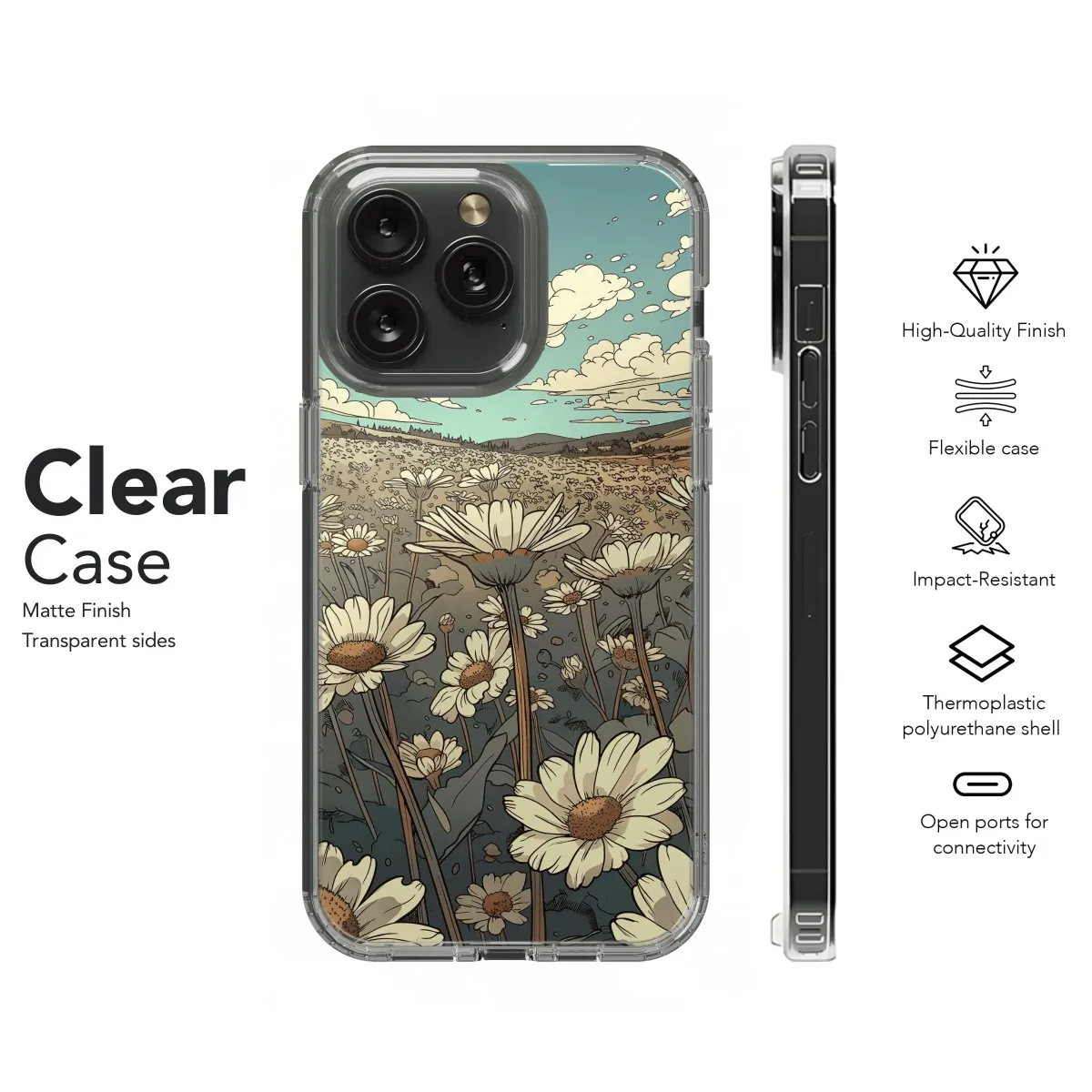 Escape to a serene daisy field with this charming phone case. Protect your iPhone, Samsung, or Pixel device with a touch of floral whimsy. Durable and beautiful, it's a dream for your phone.