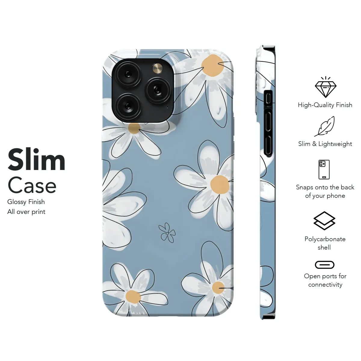 Blooming with beauty! Protect your phone with this charming daisy floral pattern case. Available for iPhone, Samsung, and Pixel models.