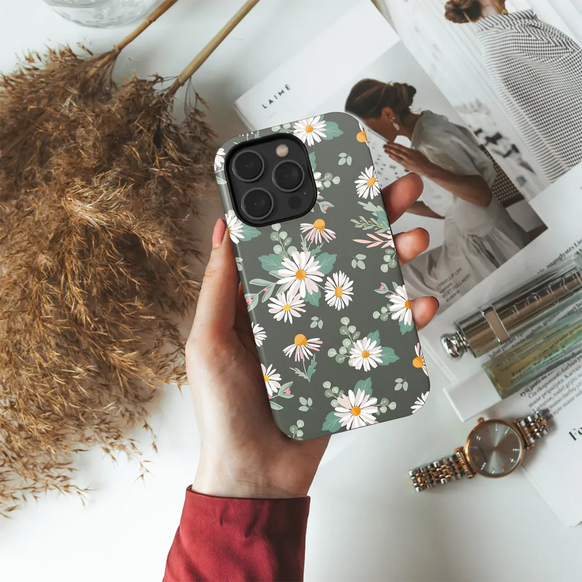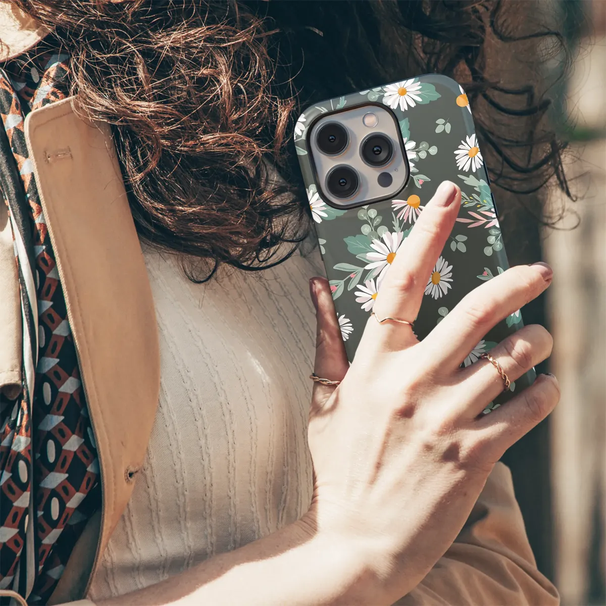 Embrace springtime elegance with this charming floral design, perfect for adding a touch of nature-inspired beauty to your everyday essentials. The intricate pattern showcases delicate daisies and lush greenery, artfully arranged on a sophisticated dark green background. This delightful design features soft pastel hues and a whimsical aesthetic that’s both modern and timeless. Its versatile style complements various personal preferences, making it a stunning and unique accessory. The high-quality print ensures vibrant colors and crisp details that will last, maintaining its charm through daily use. This beautiful design is a wonderful gift for yourself or someone special, allowing you to carry a bit of garden freshness wherever you go. Its captivating details transform a simple item into a work of art, adding a touch of personality and style to your look. Bring a breath of fresh air into your life with this captivating floral print, a beautiful blend of nature's artistry and contemporary design. This design is digitally printed for vivid colors and sharp detail. Suitable for everyday use and easy to clean. Add a touch of floral charm to your daily routine.