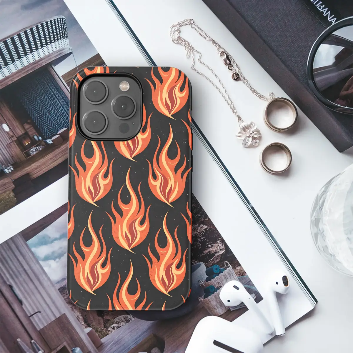 Ignite your everyday style and carry a pocketful of passion with this fiery, retro-inspired artwork. Vibrant flames, rendered in warm bursts of orange, yellow, and deep crimson, dance eternally against an inky black cosmos lightly dusted with celestial embers, creating a powerful visual contrast that commands attention. This design channels a bold, rockabilly energy and a timeless tattoo-style cool, perfect for the fierce individual who isn't afraid to make a statement. It’s an essential alt accessory for anyone with a love for grunge aesthetics, punk rock vibes, or a touch of the mystical and witchy. Wrap your most essential tech in a protective layer of pure, unapologetic personality that feels both vintage and strikingly modern. More than just a covering for your device, it's a declaration of your vibrant spirit and a piece of wearable art that showcases your unique energy. Let this stunning fire pattern be the perfect unisex gift for the boldest friend in your life, or the ultimate personal upgrade to turn a daily necessity into a conversation starter. Unleash your inner inferno and set your look ablaze.