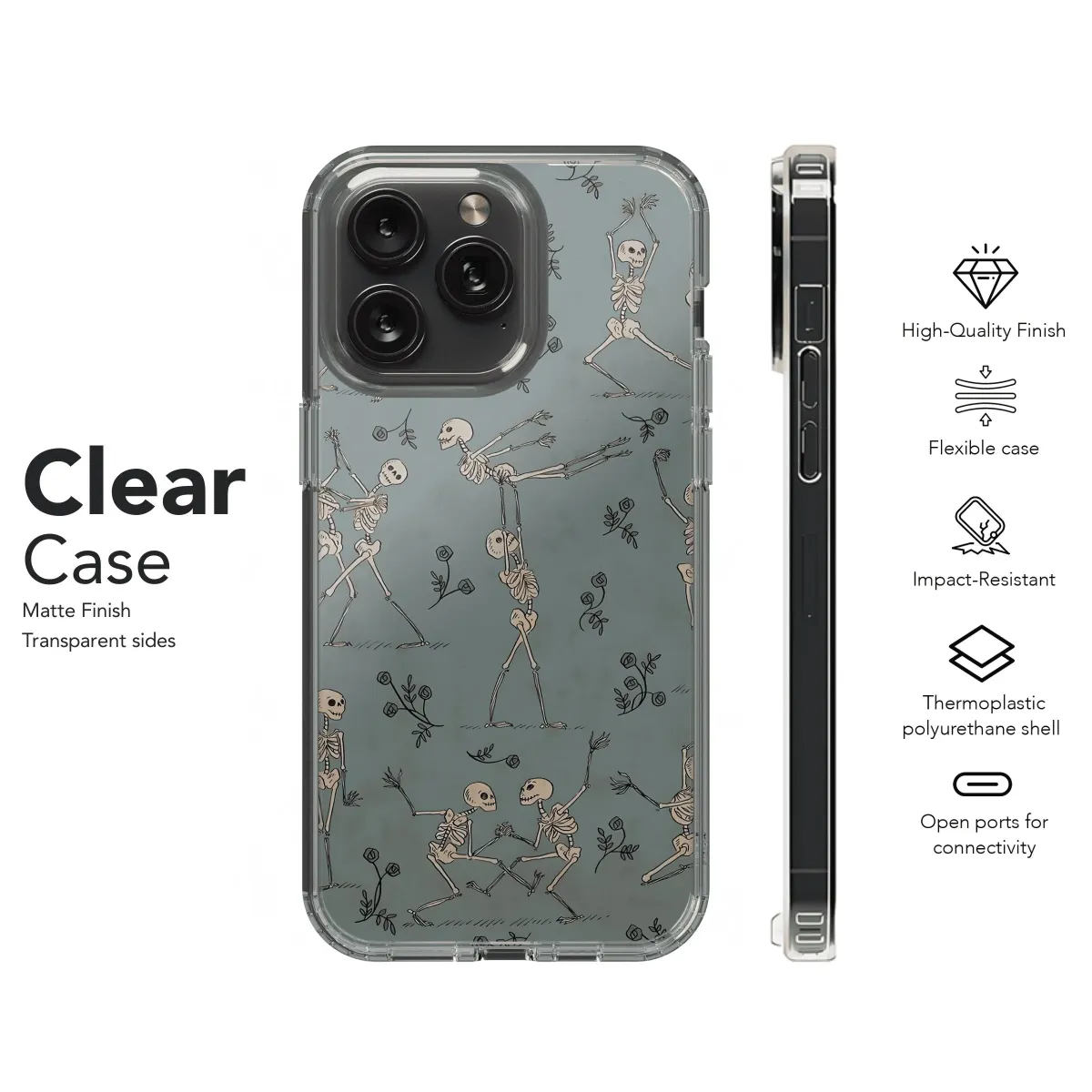 Dance the night away with this spooky cute Dancing Skeletons phone case! Protect your iPhone, Samsung, or Pixel in style with this fun and festive pattern. Available for iPhone, Samsung, and Pixel 4, 6, 8, and 0 models.