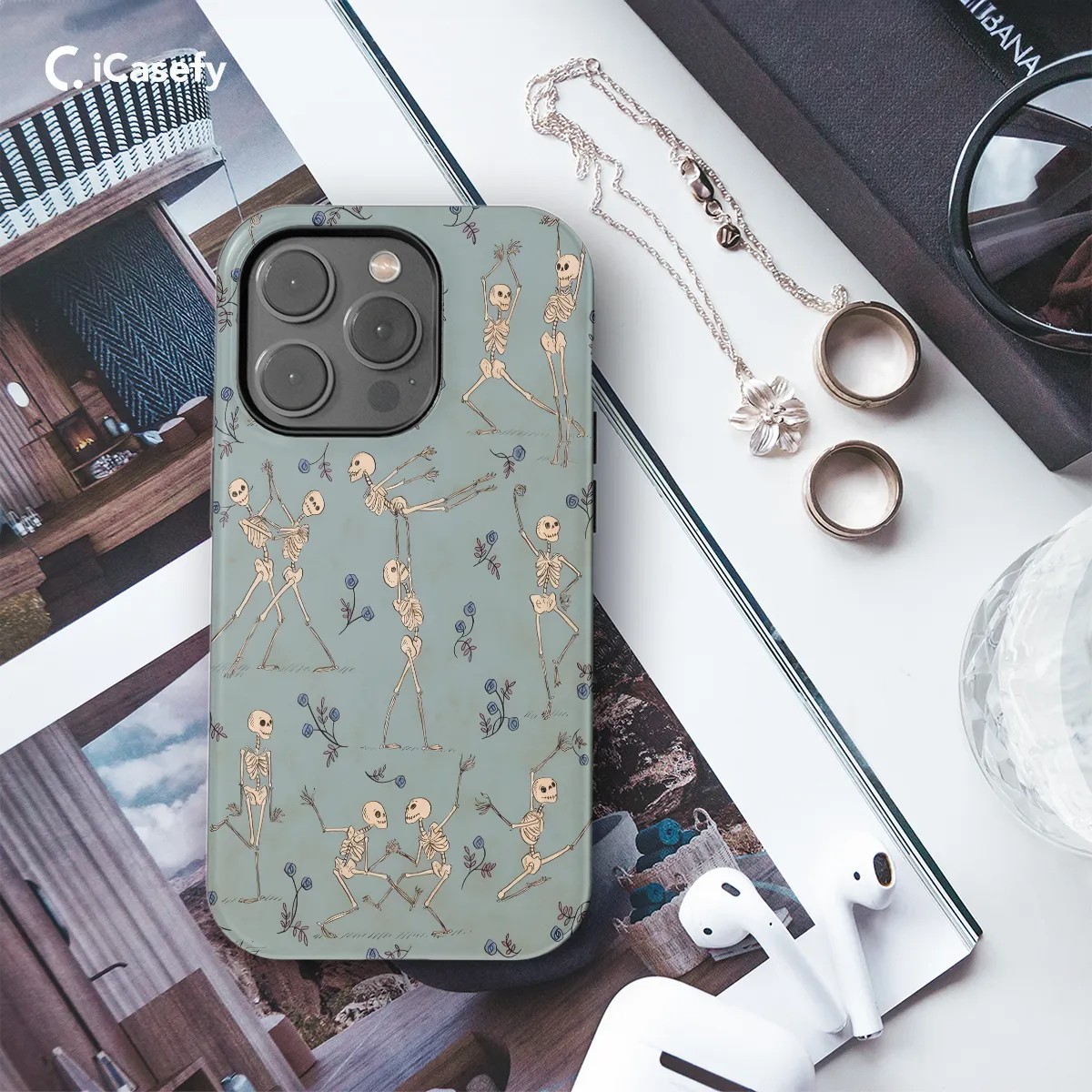 **Elevate Your Phone with Skeletal Revelry** Get ready to dance the night away with our spooky Dancing Skeletons Phone Case! Its vibrant prints bring two quirky skeletons to life, busting out their groovy moves right on your handheld device. **Features You'll Love:** * Durable and lightweight polycarbonate construction to protect your phone from bumps and scratches * Precision-cut ports for easy access to buttons and charging * Available for iPhone, Samsung, Pixel, and other popular models * Smooth and glossy finish that resists fading * Unleash your inner skeleton queen or king with this unique and eye-catching phone accessory!