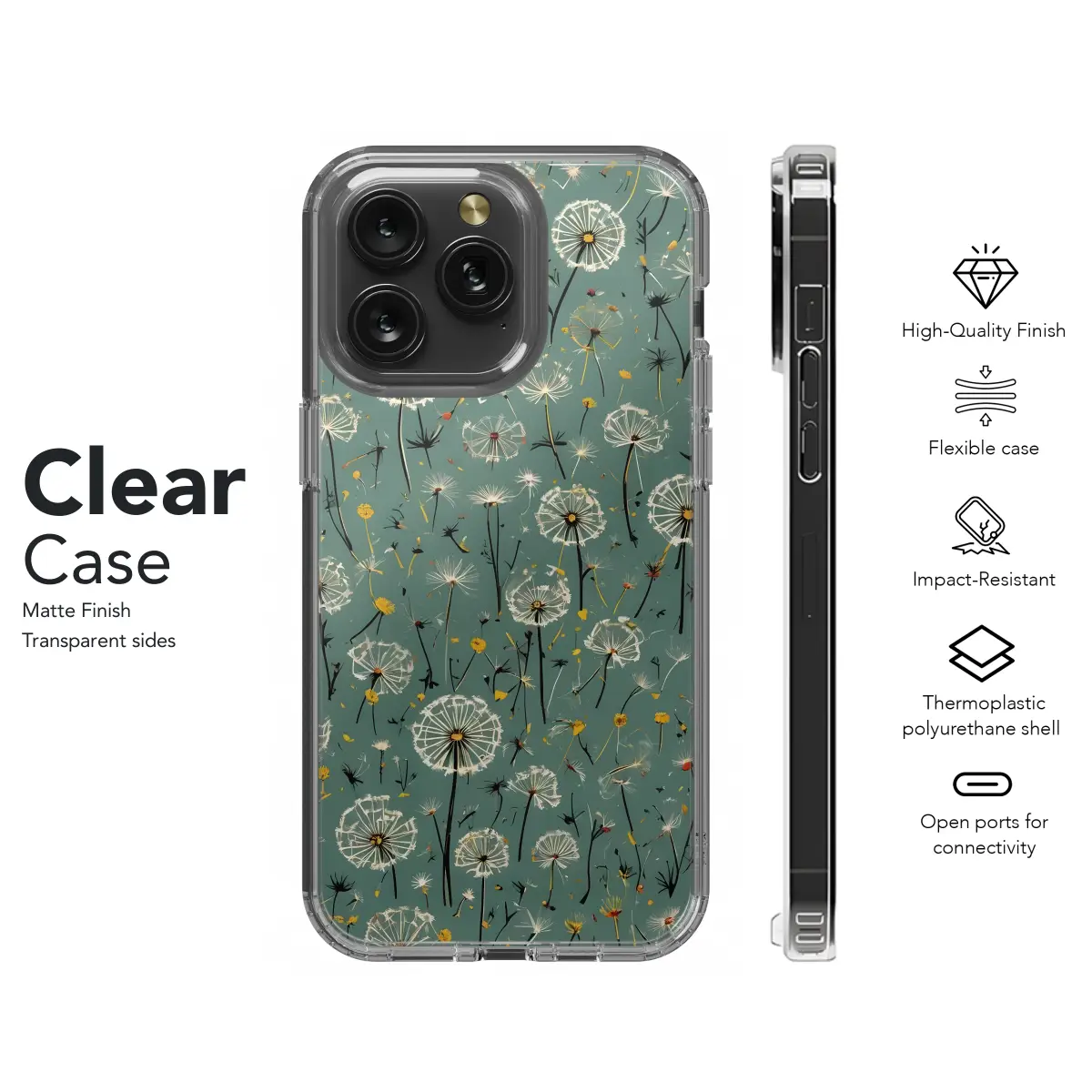 Express your love for nature with our enchanting Dandelion Wishes phone case. This ethereal design features delicate dandelion seeds floating against a serene sky, evoking a sense of freedom and hope. The durable construction protects your phone from bumps and scratches, while the vibrant colors add a touch of whimsy to your daily routine. Embrace the beauty of nature with the Dandelion Wishes phone case, available for iPhone, Samsung, and Pixel 4260.