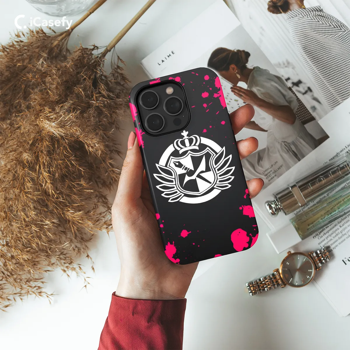 Step into the enigmatic world of Danganronpa with this captivating phone case! Protect your device in style with vibrant designs featuring iconic characters and symbols from the beloved video game series. Choose from a wide range of models to perfectly fit your iPhone, Samsung, Pixel, and beyond. Immerse yourself in the thrilling mysteries and unforgettable characters of Danganronpa with this exclusive phone accessory.