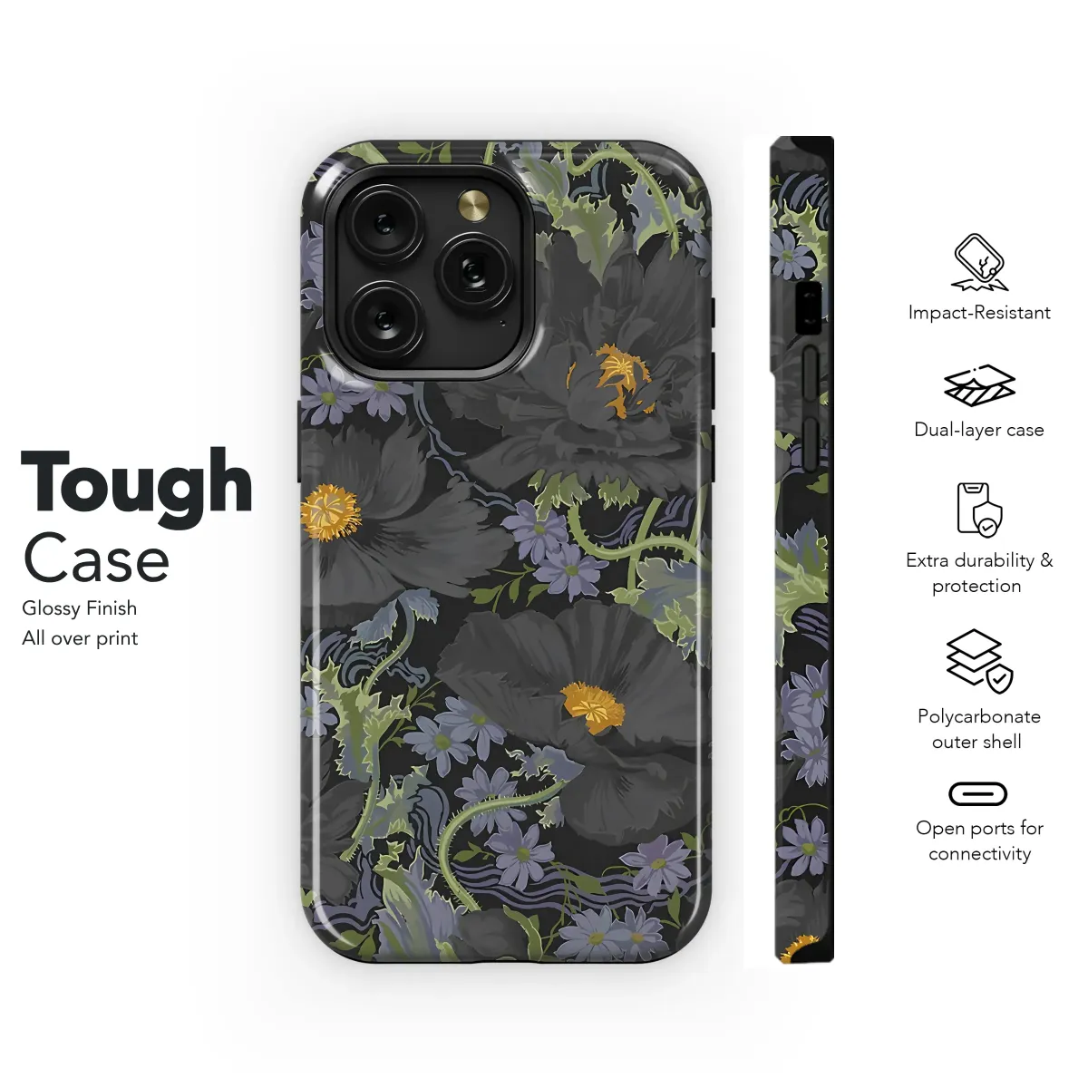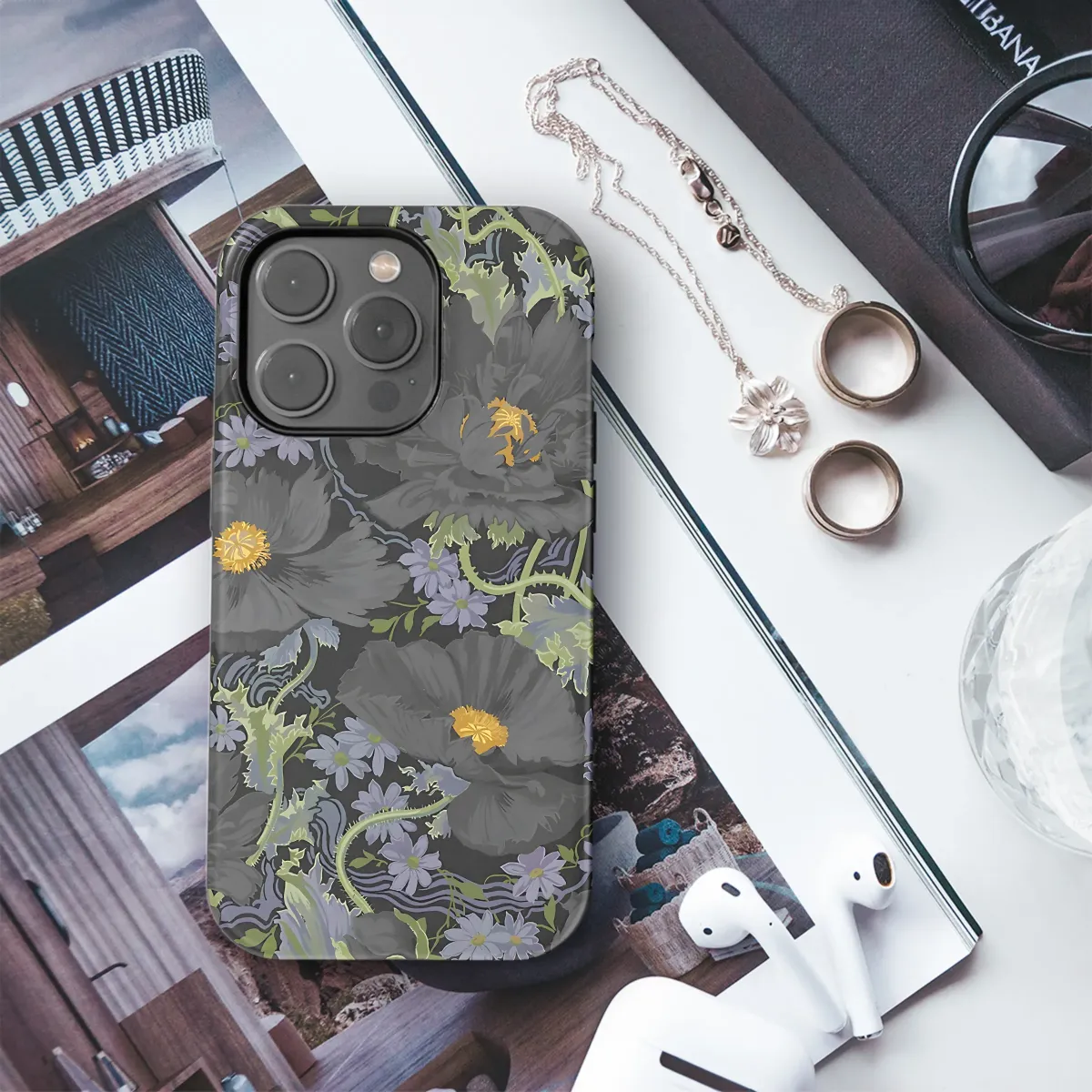 Elevate your style with this captivating floral design, showcasing a mesmerizing array of dark poppies and delicate companion flowers. The rich, moody palette of deep charcoal grays and muted purples creates a sophisticated and mysterious aesthetic. Intricate details bring the blossoms to life, showcasing their velvety texture and intricate centers. This exquisite pattern offers a unique and elegant look, perfect for adding a touch of artistry to your personal accessories. The design’s dark background provides a striking contrast that enhances the vibrancy of the blooms, making it a truly captivating piece that reflects individual style. This high-quality print is durable and vibrant, ensuring long-lasting beauty. Transform your everyday item into a statement piece reflecting artistic expression and personal flair. This design makes a stunning and unique gift, or a luxurious treat for yourself. Add a touch of darkness and elegance to your wardrobe. Search terms: dark floral, moody floral, poppy print, gothic floral, dark academia, floral pattern, charcoal gray, purple flowers, unique design, elegant design, high-quality print.