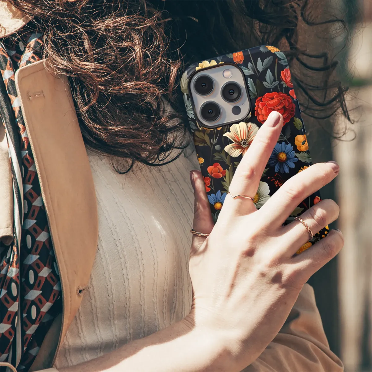 Embrace vibrant artistry with this captivating floral design, perfect for adding a touch of bohemian elegance to your everyday life. Rich, jewel-toned blooms in fiery reds, sunny yellows, and creamy whites dance across a deep midnight background, creating a mesmerizing tapestry of nature's finest. This intricately detailed print features a lush variety of flowers, from bold sunflowers and delicate daisies to stunning poppies and chrysanthemums, showcasing a masterful blend of textures and colors. The design exudes a vintage-inspired charm with a modern twist, making it a statement piece that's both timeless and trendy. Elevate your style with this exquisite print, a testament to the beauty and artistry of botanical illustration. This high-quality image is digitally printed using vibrant, long-lasting inks ensuring your accessory retains its stunning vibrancy for years to come. A unique and eye-catching accessory for those who appreciate bold floral designs and exquisite craftsmanship. This design is sure to turn heads and spark conversations. Bring the beauty of a blooming garden wherever you go!