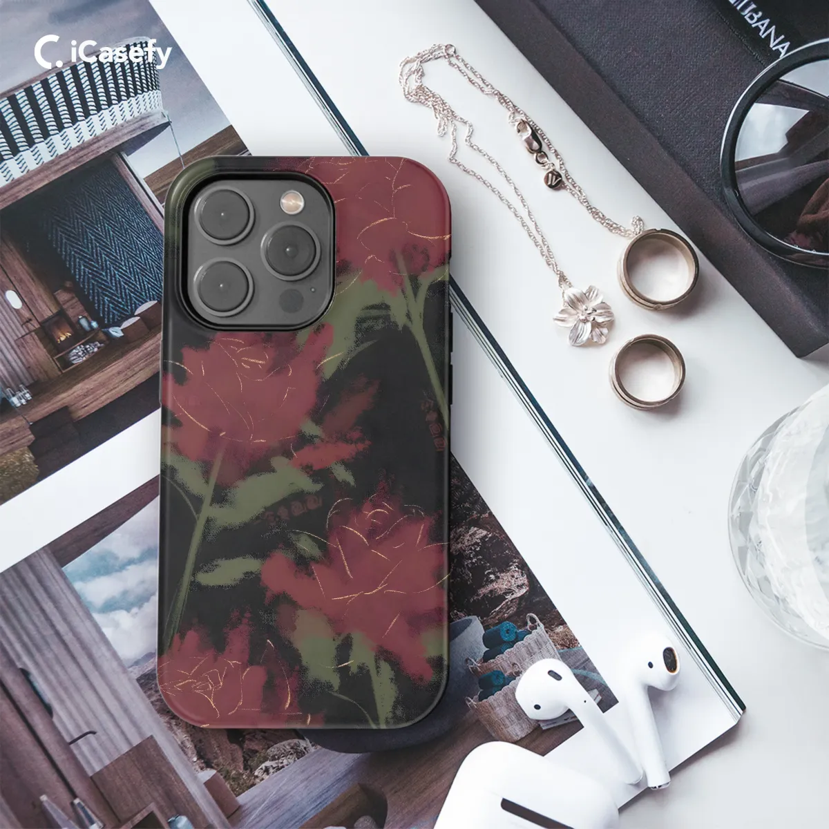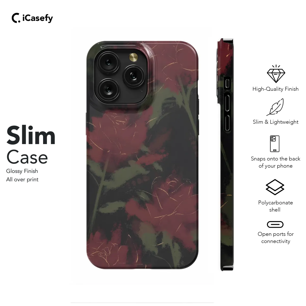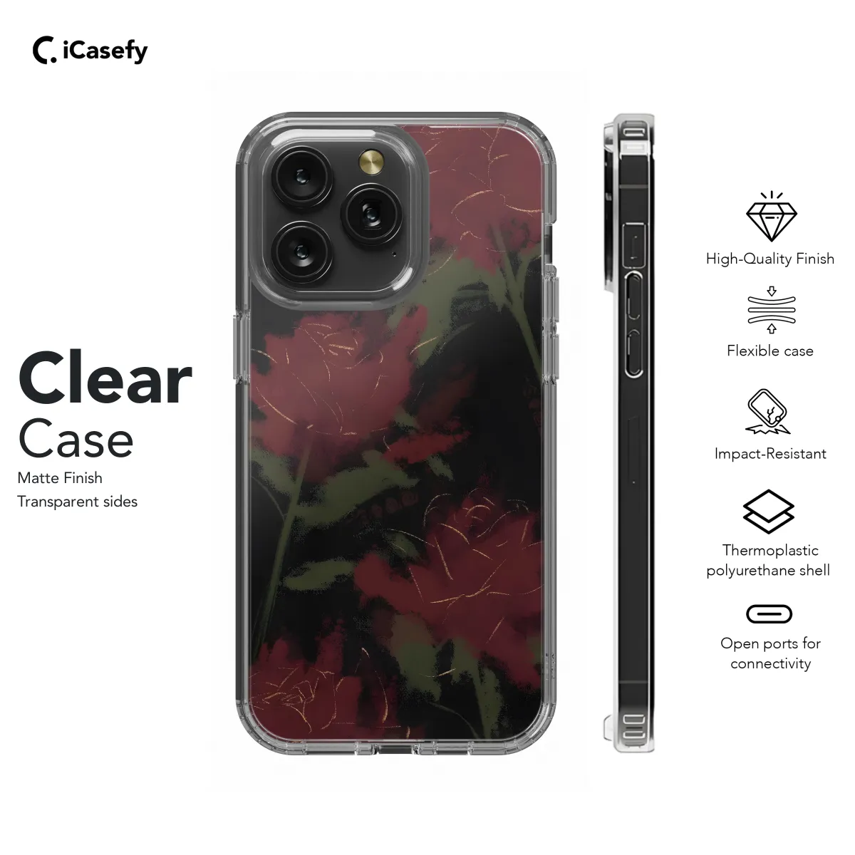 Immerse yourself in the dark and alluring realm of this captivating phone case, adorned with crimson blooms that paint a hauntingly beautiful tapestry. Each intricate petal, rendered in stark contrasts of black and red, evokes a sense of mystery and ethereal elegance. Let this case envelop your device in an aura of gothic glamour, transforming it into a haunting work of art that will draw every eye.