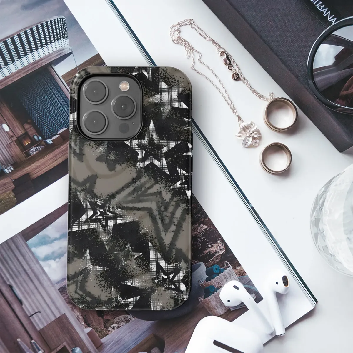 Elevate your style with this edgy, monochrome design featuring a captivating array of stars. The intricate detailing and textured effect create a striking, grunge-inspired aesthetic perfect for expressing your unique personality. This design boasts a sophisticated blend of dark grays and blacks, offering a subtle yet powerful visual impact. The subtly shimmering, pixelated stars add a touch of unexpected glamour against the matte background, resulting in a depth and dimension that sets it apart. This high-quality print is durable and resistant to fading, ensuring your new accessory remains vibrant and stylish for years to come. The design's versatile appeal makes it a perfect choice for anyone looking to add a touch of modern rebellion to their everyday look. Its striking visual impact makes a statement wherever you go, reflecting your bold individuality and confident style. This eye-catching print is a guaranteed conversation starter and will surely turn heads. This is more than just an accessory; it's a self-expression, a bold statement piece crafted for the modern trendsetter.
