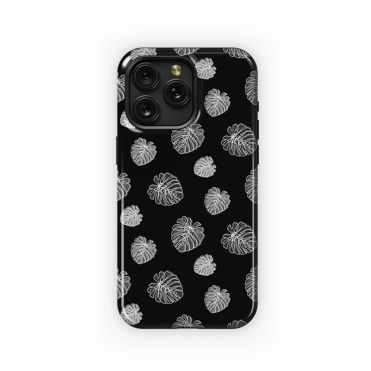 Elevate your daily essential with this stunning tropical pattern, perfect for adding a touch of natural beauty to your most-used item. Featuring a sophisticated repeat of grey Monstera leaves set against a deep black background, this design brings a touch of modern botanical elegance wherever you go. The iconic split-leaf shape of the Monstera deliciosa is rendered in varying shades of grey, creating depth and visual interest while maintaining a clean, minimalist aesthetic. This unique print is perfect for plant lovers and anyone seeking a stylish way to personalize their digital device. The intricate leaf veins are detailed with crisp white outlines, adding a touch of delicate artistry to the bold tropical theme. Imagine the sleek look this botanical artwork provides, offering both visual appeal and a distinct personality. This isn't just a simple covering; it's a piece of portable art that reflects your appreciation for nature and contemporary design. The durable print ensures the vibrant details and striking contrast remain sharp and resistant to everyday wear, keeping your accessory looking fresh and stylish. Add a touch of the jungle to your hand with this captivating grey leaf pattern on a black backdrop. It’s the perfect blend of nature-inspired beauty and modern sophistication, making your everyday item stand out. Embrace the lush vibes and unique pattern that offers both style and a protective layer for your most-used gadget. This eye-catching accessory provides a comfortable grip and a distinctive look that complements any outfit or mood. Make a statement with this trendy Monstera design, a must-have for anyone who loves botanical art and sleek style. It's an instant upgrade for your portable tech, combining aesthetic appeal with practicality. Show off your love for houseplants with this unique, high-quality print that transforms a necessity into a fashionable accessory. This pattern is designed to catch the eye and start conversations, making your personal item truly yours.
