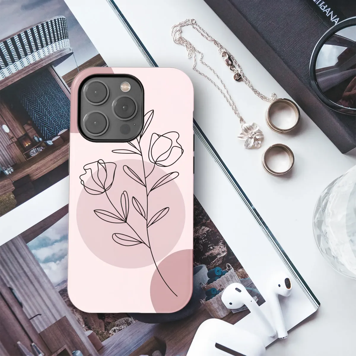 Wrap your most essential companion in a whisper of quiet elegance with our modern botanical design, a perfect piece of art for your daily life. A single, unbroken line dances across a serene backdrop, blossoming into delicate flowers and gentle leaves in a stunning display of minimalist line art that captures the simple beauty of nature. This isn't just a pattern; it's a tiny story of growth and grace told in one fluid, elegant stroke. The delicate botanical drawing rests upon a dreamy abstract landscape of overlapping circles, like soft moons in shades of blush pink, dusty rose, and muted mauve, creating a beautiful depth and a calming, contemporary pink aesthetic. This design is a must-have for the modern romantic or anyone who adores a chic boho floral vibe. It's a subtle yet impactful statement, bringing a touch of nature's serenity and Scandi-inspired simplicity to your fingertips. This beautiful tech accessory is the perfect way to personalize your device, protecting it with a unique layer of abstract charm. An ideal gift for her, a best friend, or a thoughtful treat for yourself, this girly and sophisticated accessory turns an everyday item into a personal masterpiece. Let this delicate line art flower accompany you on all your adventures, adding a soft, artistic touch to your modern world.