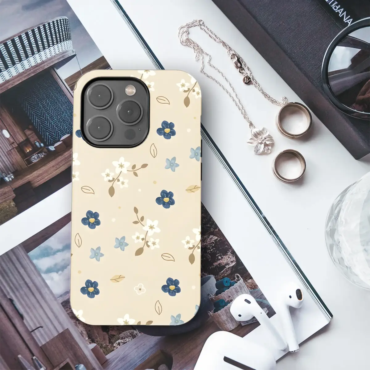 Wrap your daily companion in a whisper of a wildflower meadow with this charming and elegant botanical design. Delicate navy blue and dusty sky-blue blossoms drift gently across a warm, sandy beige canvas, mingling with sprigs of creamy white flowers that evoke a sense of timeless, handcrafted charm. Inspired by vintage ditsy floral prints and the quiet beauty of a prairie field, this lovely pattern turns your most essential tech into a statement of minimalist cottagecore style. Each element, from the simple outlined leaves to the whimsical dots, is placed to create a feeling of serene, natural harmony. It’s the perfect way to carry a little piece of nature's tranquility with you, offering a beautiful artistic layer for your digital lifeline. An ideal tech accessory and a thoughtful gift for her, for a best friend, or a sweet bridesmaid gift, this design brings a soft, artistic touch to your everyday routine, ensuring you carry a pocketful of serene, botanical beauty wherever you go.