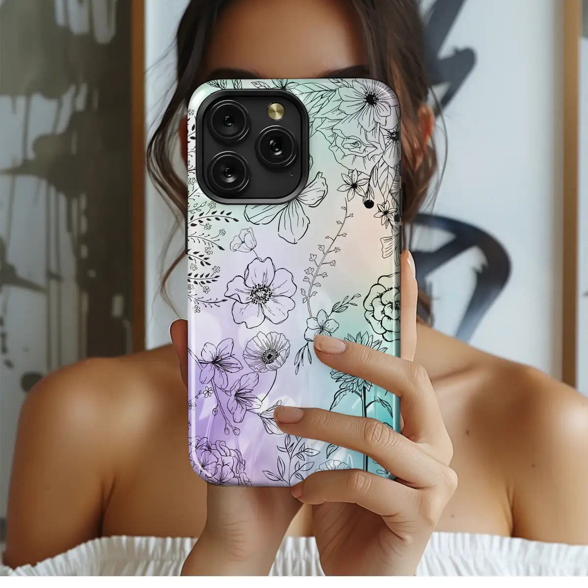 Wrap your daily essential in a whisper of ethereal beauty with this enchanting botanical design. It’s like carrying a secret garden in your pocket, a captivating meadow where delicate, hand-drawn wildflowers bloom in intricate black line art. Follow the graceful lines of a cheerful sunflower, a dreamy poppy, and romantic rosebuds as they float across a mesmerizing, soft-focus backdrop. This dreamy pastel canvas melts seamlessly from a cool, misty mint green to a serene twilight lavender, kissed by a warm peachy blush, evoking the magic of a garden at dawn. The perfect aesthetic accessory for the modern romantic, it blends minimalist elegance with a touch of whimsical cottagecore charm. Let this unique, artistic shield serve as a durable and stylish statement for your most treasured tech, turning an everyday object into a piece of wearable art. It's a thoughtful nature lover gift, a constant source of quiet joy that celebrates the delicate dance between art and nature every time you reach for it.