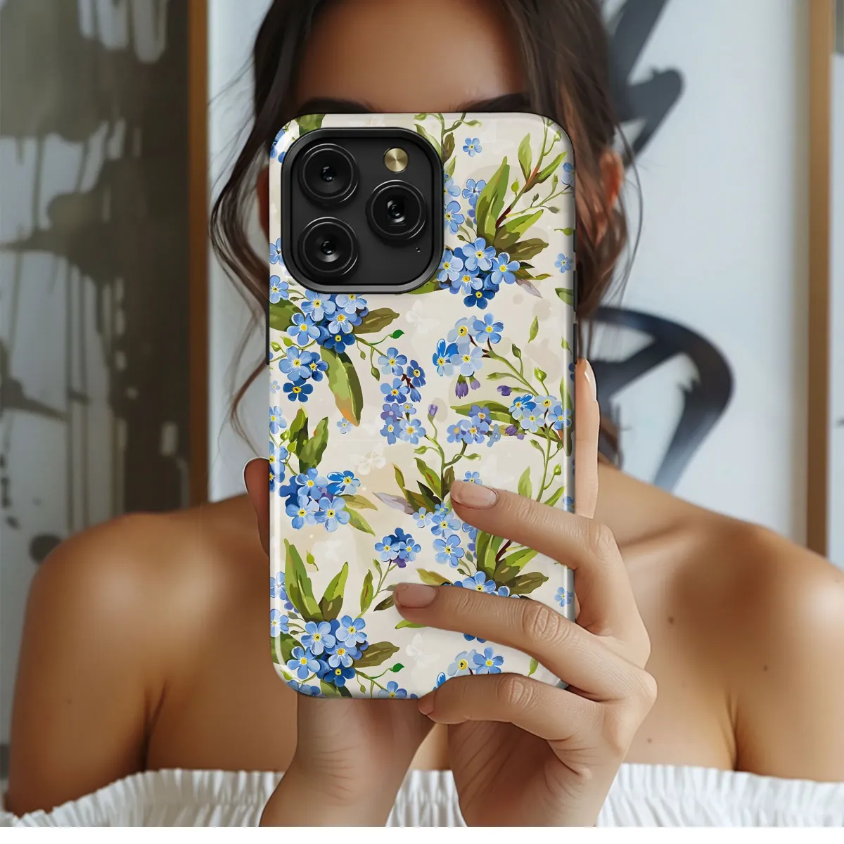 Immerse yourself in the delicate charm of this enchanting floral pattern. Featuring a lush scattering of vibrant blue blossoms, reminiscent of forget-me-nots with their distinctive yellow centers, intertwined with elegant green foliage and tender buds, this design captures the serene beauty and fresh vitality of a blossoming garden. Subtle white butterflies flit gracefully among the flowers against a soft, light background, adding a touch of ethereal grace and whimsical movement. The artistic illustration style evokes a sense of classic romance and vintage appeal, creating a timeless look that is perfect for adding a touch of nature-inspired elegance to your everyday items. This beautiful botanical print is more than just a visual treat; it's a little piece of spring or summer to carry with you, bringing a cheerful, pretty, and calming aesthetic to any accessory. Whether you're a lover of nature, vintage styles, or simply appreciate beautiful art, this captivating blue flower arrangement offers a delightful and personal way to express your personality and brighten your surroundings. It makes a thoughtful and unique gift for anyone who adores delicate flowers, garden themes, or requires a touch of pretty sophistication in their daily life. Elevate your personal style with this exquisite nature aesthetic, a perfect fusion of timeless natural beauty and contemporary charm, designed to inspire and delight with every glance.