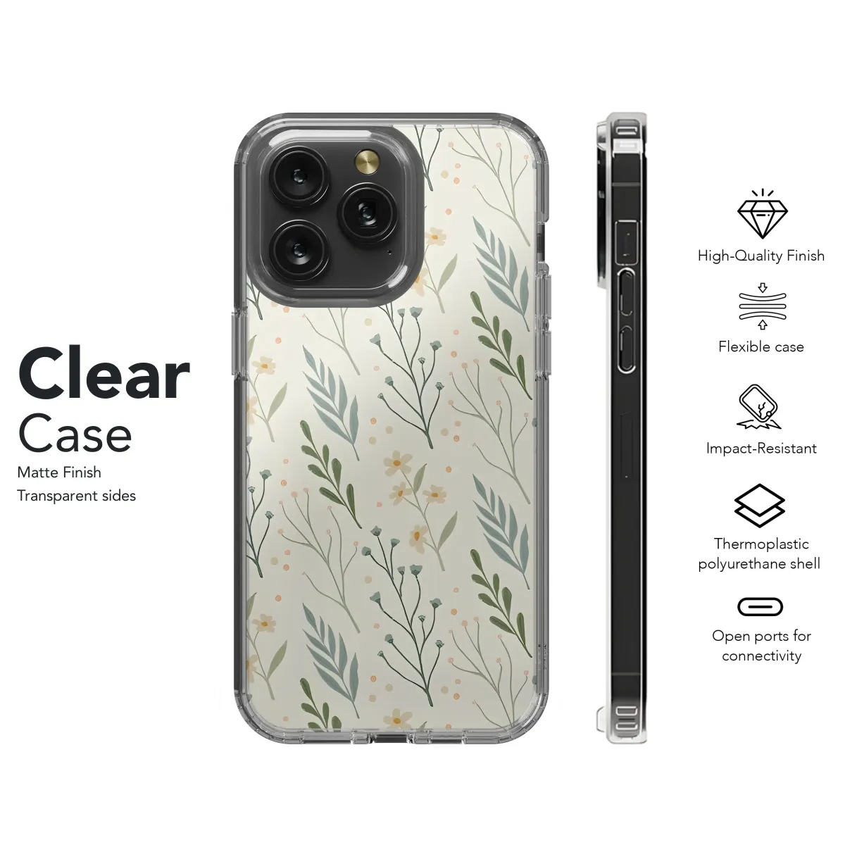 Discover a touch of serene natural beauty with this exquisite botanical pattern, a seamless design blooming with delicate wildflowers, intricate branching stems, and elegant leafy sprays. Set against a gentle cream background, this charming print features tiny cream and soft yellow blossoms mingling with understated blue-grey and verdant green leaves, creating a harmonious blend of natural hues. Subtle pink and orange dots are scattered throughout, adding a touch of whimsical detail reminiscent of seeds or morning dew glistening in the light. The overall effect is one of timeless elegance and rustic charm, perfectly capturing the simple grace of a wild garden in tranquil bloom. This nature-inspired motif offers a sense of calm and serenity, effortlessly bringing the tranquility of the outdoors to your personal items. Its vintage cottagecore aesthetic appeals deeply to those who appreciate handcrafted beauty and the delicate artistry found in the natural world. The hand-drawn style imbues the pattern with an authentic, unique feel, making each application a small piece of wearable art. Whether you seek a touch of floral sweetness, a subtle nod to nature, or a sophisticated botanical statement, this design provides a delicate yet captivating visual experience. Embrace the effortless charm of this wildflower pattern and carry a piece of serene natural beauty with you throughout your day, adding a soft, aesthetic touch to your everyday essentials. This versatile print is perfect for anyone looking to infuse their accessories with a touch of gentle, natural elegance and a timeless, vintage-inspired look that feels both fresh and classic.