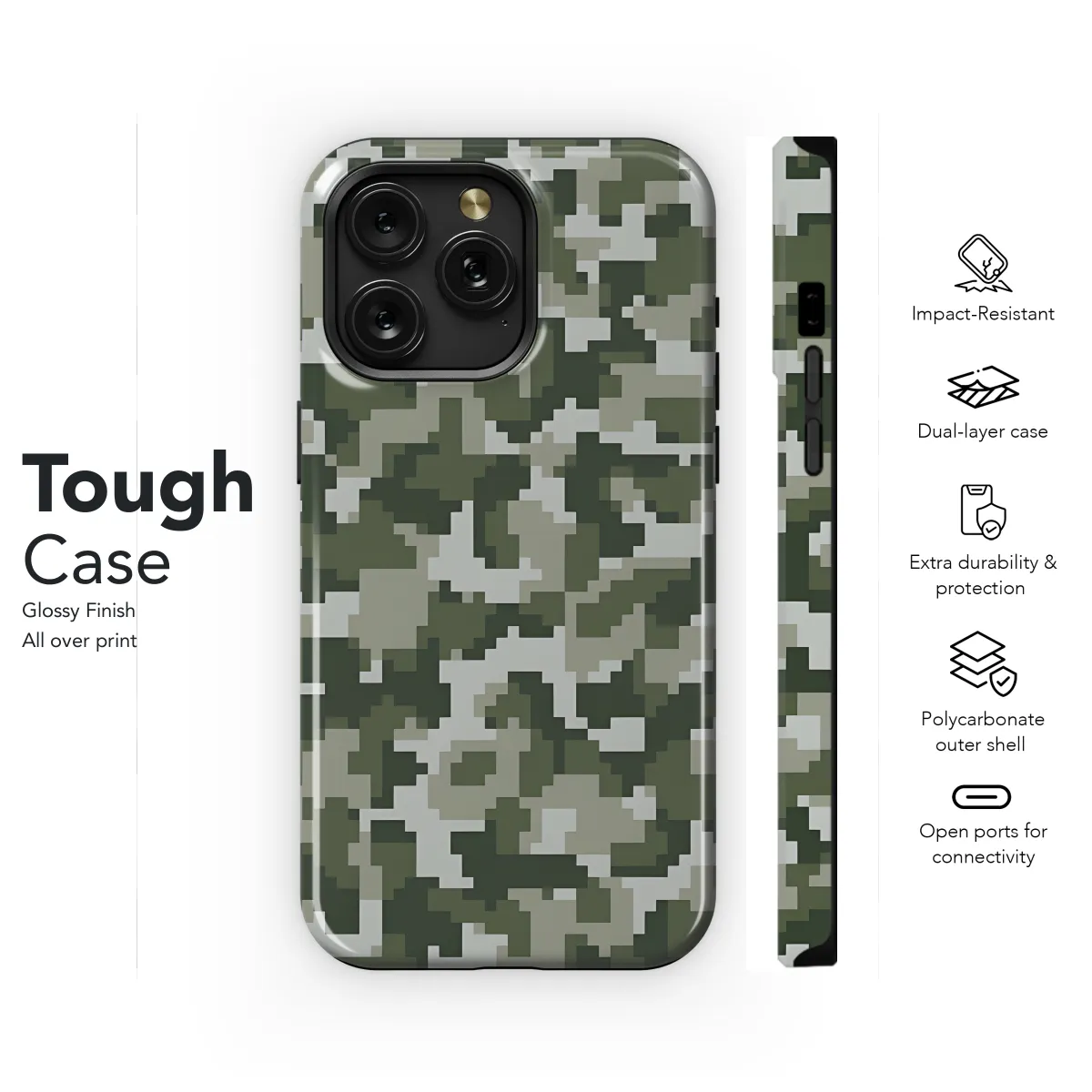 Protect your device in style with our Digital Camouflage Pattern Phone Case. Made from durable and scratch-resistant materials, this case provides excellent protection against everyday wear and tear. The eye-catching digital camouflage pattern adds a touch of military-inspired flair to your phone, making it the perfect accessory for those who appreciate a tactical aesthetic. Compatible with a wide range of iPhone, Samsung, and Pixel models, this case ensures a snug and secure fit.