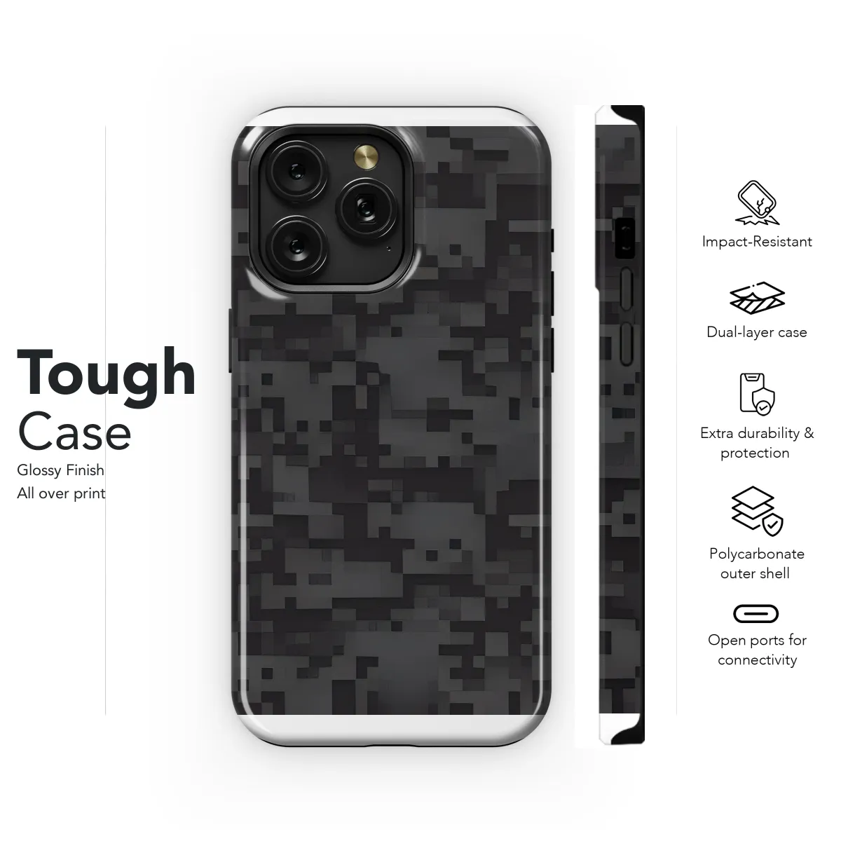 Protect your phone in style with this sleek and durable digital camouflage pattern case. Designed to fit a wide range of iPhone, Samsung, and Pixel models, this case offers comprehensive protection against drops, scratches, and everyday wear and tear. Its lightweight and form-fitting construction ensures a perfect fit without adding bulk, while the precise cutouts provide easy access to all ports and buttons. The striking digital camouflage pattern adds a touch of military-inspired flair to your device, making it the perfect accessory for those who appreciate both style and functionality.