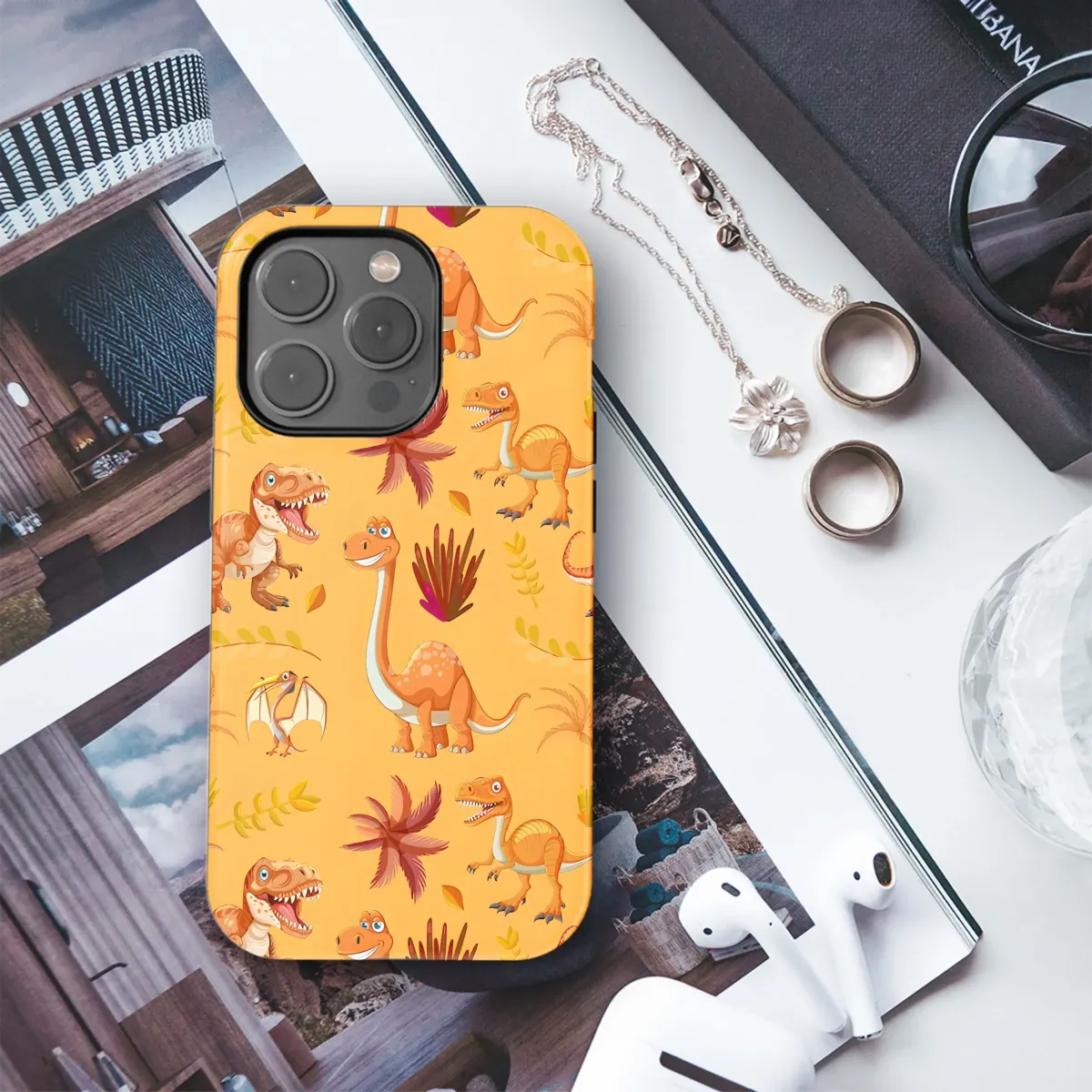 Roar into style with this delightful dinosaur pattern! Perfect for adding a touch of prehistoric fun to your everyday tech, this vibrant design features a playful mix of everyone's favorite dinos, from towering long-necks to fierce T-Rexes and soaring Pterodactyls. The cheerful orange and brown color palette is both eye-catching and versatile, making it a fantastic choice for kids and adults alike. This unique design brings a personalized and trendy look to your mobile device, adding a pop of color and personality to your tech accessories. Get ready to show off your love for these ancient giants with this adorable and on-trend jurassic motif. Great for gifts, treat yourself or a dino-loving friend with this fun and unique Dinosaur Print, Dino Art, Children's Design, Jurassic Pattern, Cute Animal Print, Personalized Tech, Trendy Design, Prehistoric Animals, Playful Illustration, Dino Lover Gift.