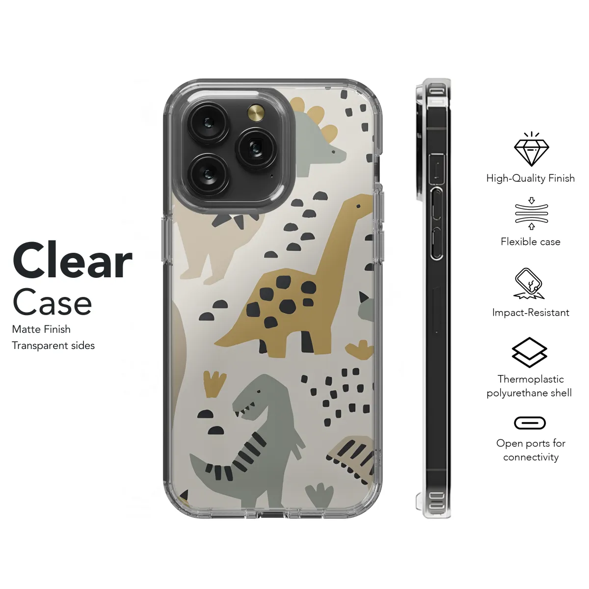 Shield your phone from the claws of accidents with our fierce Dino Phone Case! Crafted with a durable exterior, this case protects your device from bumps, scratches, and the jaws of fate. Compatible with iPhone, Samsung, and Pixel models, this case lets you unleash your inner dinosaur while keeping your tech safe and sound.