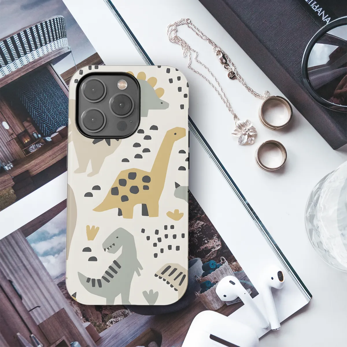 Shield your phone from the claws of accidents with our fierce Dino Phone Case! Crafted with a durable exterior, this case protects your device from bumps, scratches, and the jaws of fate. Compatible with iPhone, Samsung, and Pixel models, this case lets you unleash your inner dinosaur while keeping your tech safe and sound.