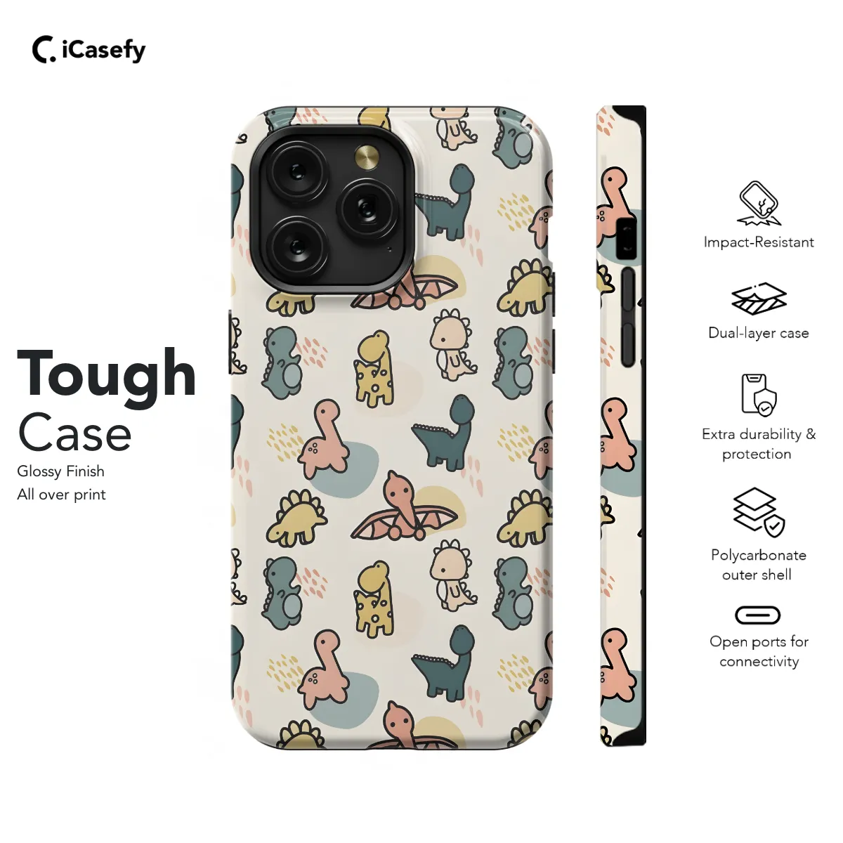 Protect your phone in style with this adorable dinosaur pattern case. Made from durable materials, this case will keep your phone safe from bumps and scratches. The cute dinosaur design is perfect for anyone who loves these prehistoric creatures. Available for a variety of iPhone, Samsung, and Pixel models, so you can find the perfect fit for your phone.