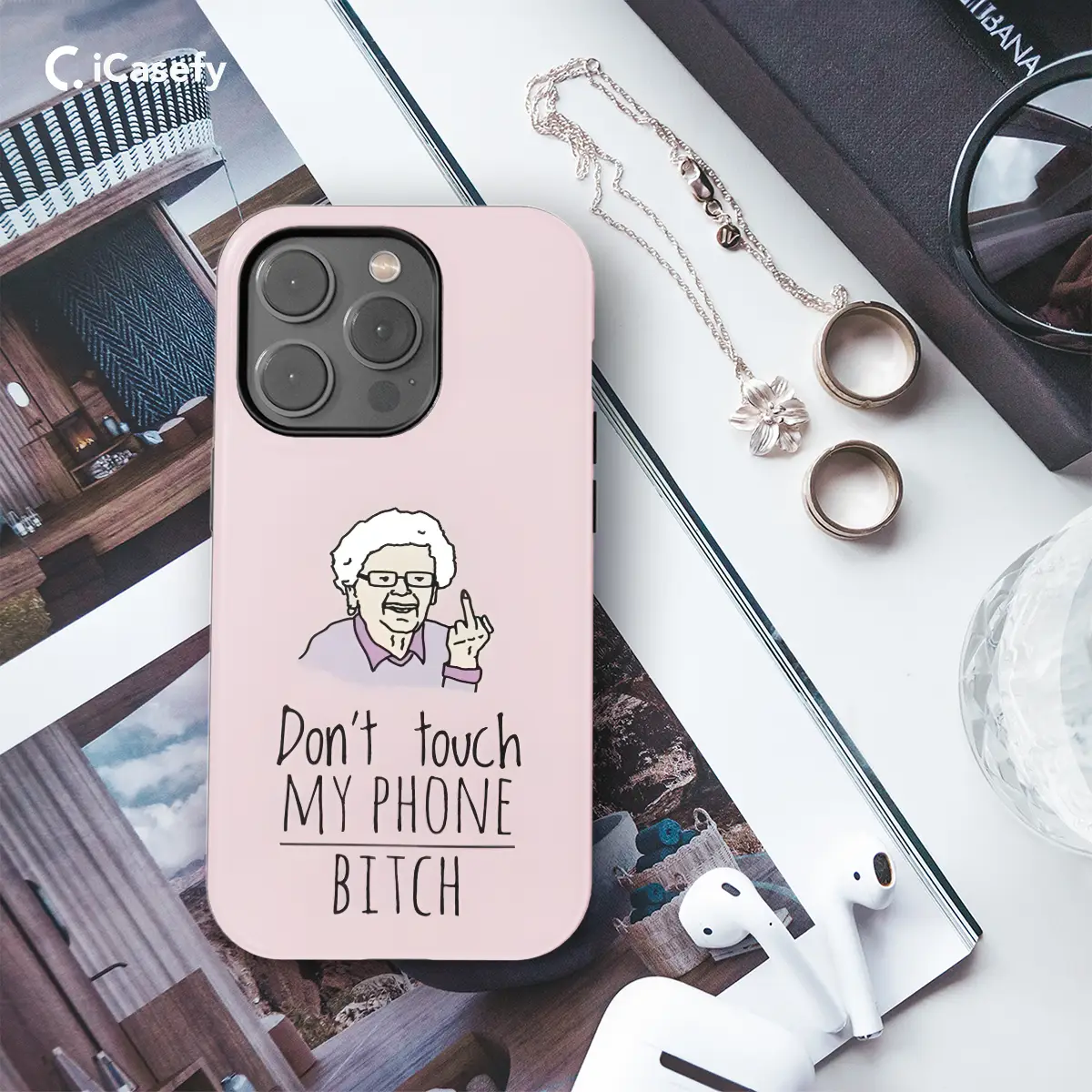 Protect your phone with sassy style! This "Don't touch my phone Bitch, Middle Finger Grandma" case features a bold and hilarious quote that will make everyone laugh. Made for iPhone, Samsung, Pixel, and more, it's the perfect way to keep your device safe while expressing your sassy personality. Say goodbye to phone snatchers with this unmissable case!
