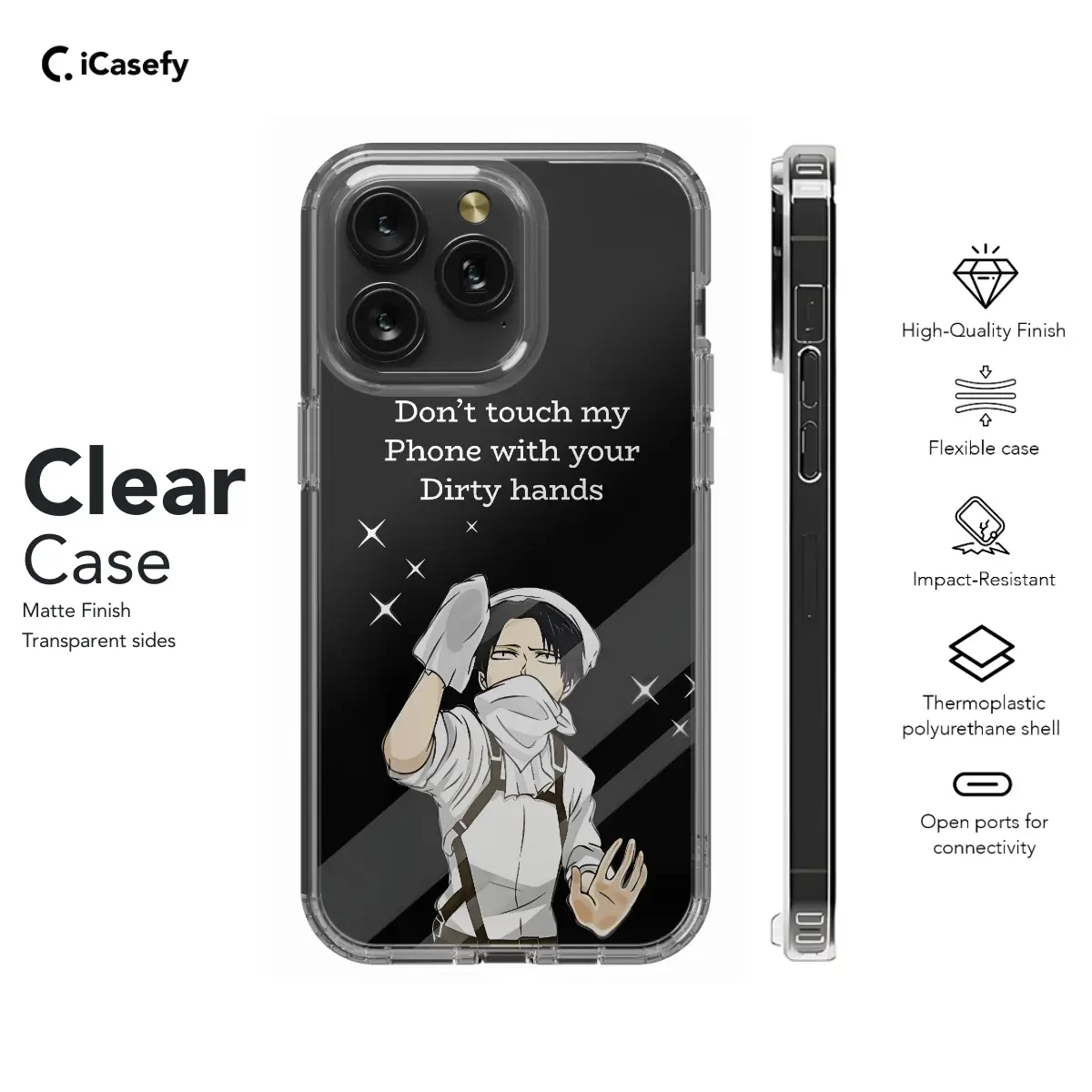 Protect your precious phone from the unhygienic paws of others with this hilarious anime-themed case! Featuring the iconic "Don't touch my Phone with your Dirty hands" slogan, this case will keep your device safe from smudges, fingerprints, and malicious paws. Compatible with a wide range of iPhone, Samsung, Pixel, and other phone models, this case is the perfect way to add a touch of humor and anime flair to your daily life.
