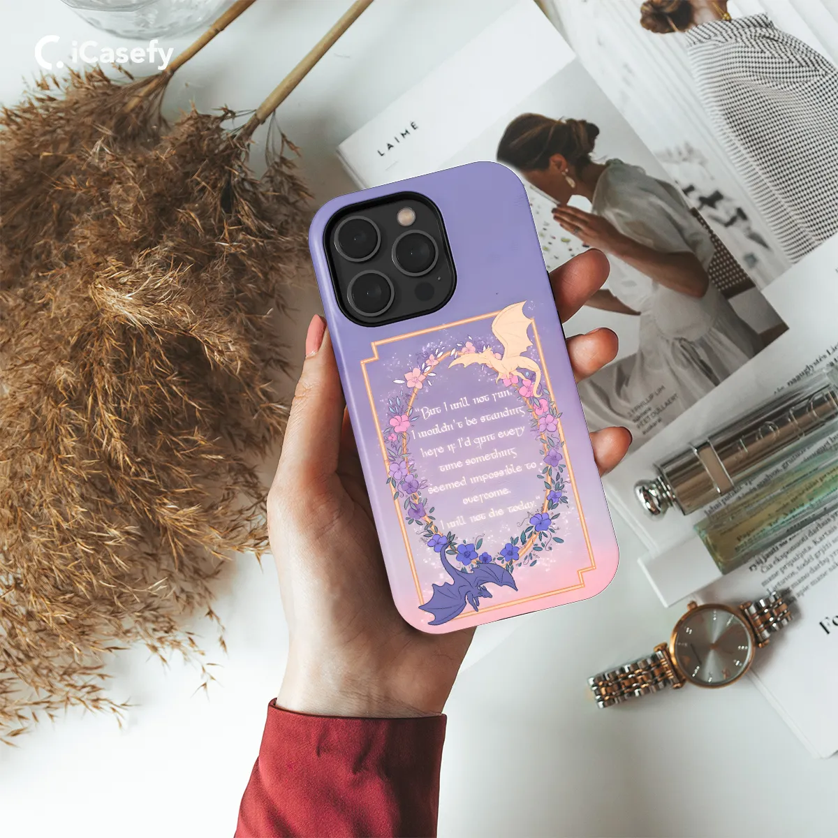 Embrace the enchantment of the mystical Fourth Wing of Prythian with this captivating phone case. Designed to protect your device while immersing you in the world of Sarah J. Maas's beloved ACOTAR series, this case is adorned with intricate artwork inspired by the iconic Fourth Wing. Whether you're a devoted reader or simply appreciate the allure of fantasy, this case is the perfect accessory to keep your phone safe and stylish.