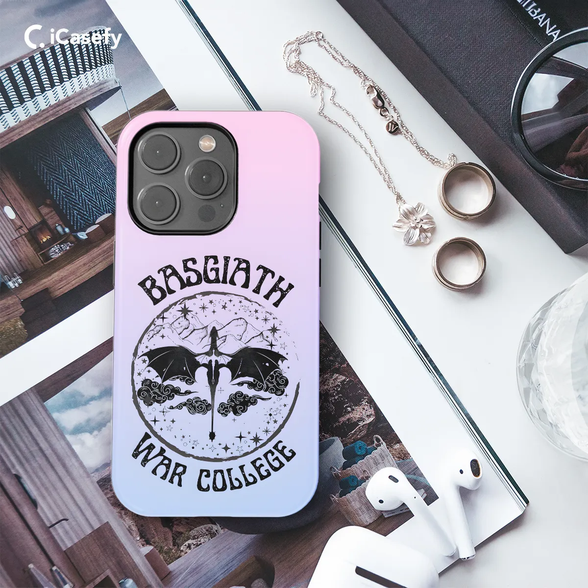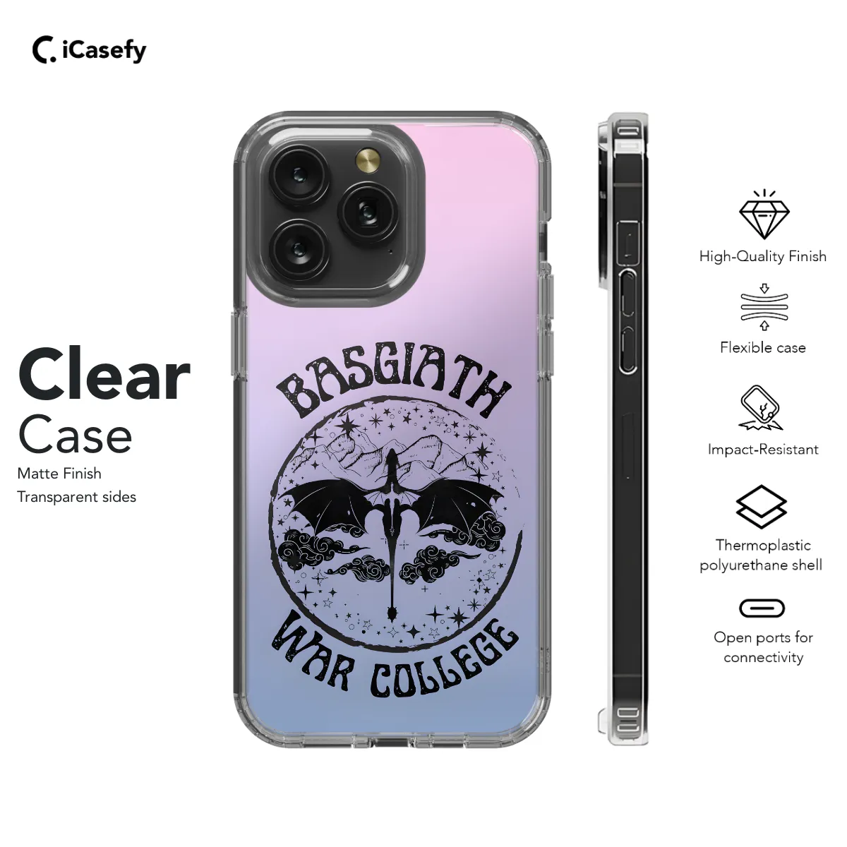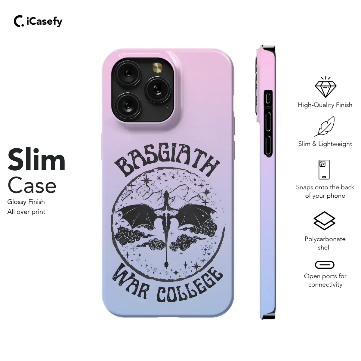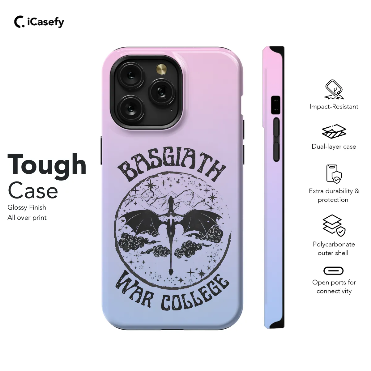 Step into the captivating realm of Prythian with our enchanting iPhone and Samsung phone case, adorned with the symbol of the fabled Dragon Fourth Wing from Sarah J. Maas's beloved Acotar series. Let the intricate design on your phone invoke the magic of the Night Court and transport you into the heart of the Fae world.