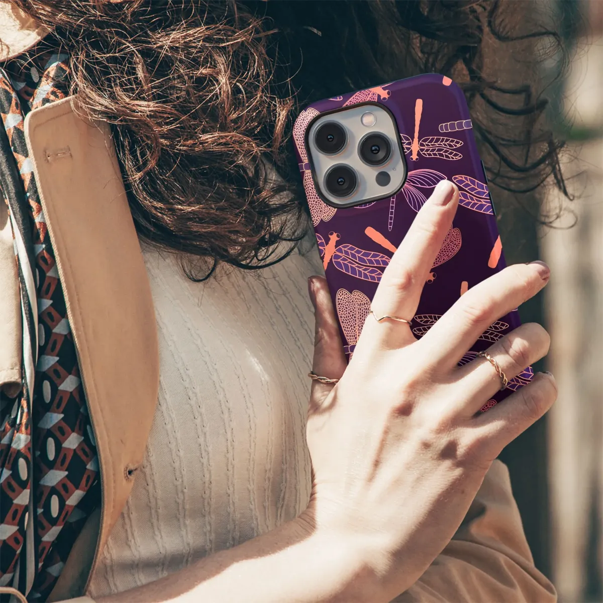 Fly high with this captivating dragonfly design! A beautiful, intricately designed pattern featuring stylized dragonflies in shades of peach, pink, and purple against a rich, deep purple backdrop. This striking insect pattern is perfect for adding a touch of nature-inspired elegance to your everyday tech. The detailed linework and vibrant color palette create a visually stunning and unique aesthetic. Ideal for those who love whimsical art, insect motifs, and contemporary design. Let this beautiful dragonfly artwork transform your portable device into a statement piece. Embrace the magic of nature with this captivating design! A great gift idea for nature lovers, artists, or anyone who appreciates unique and stylish tech accessories. Perfect for adding a pop of color and personality to your mobile companion. Capture the essence of summer with this enchanting dragonfly pattern!