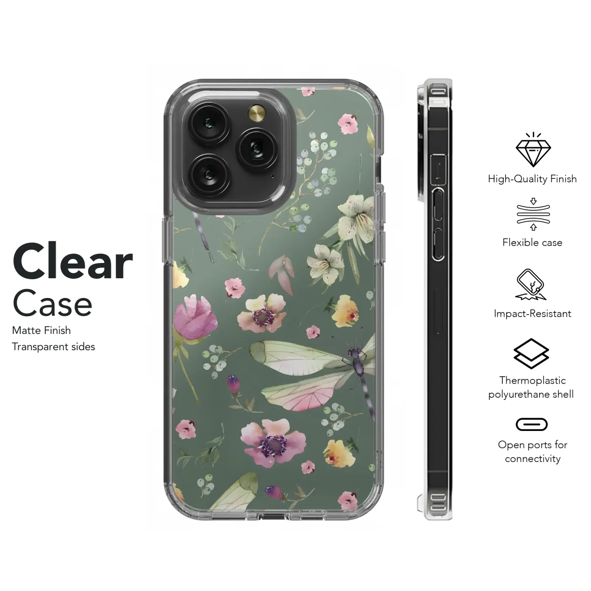 Adorn your device with this enchanting watercolor design featuring delicate wildflowers and graceful dragonflies. The muted sage green background provides a serene backdrop for the soft pinks, yellows, and purples of the blossoms. Intricate details in each bloom and the translucent wings of the insects create a captivating, artistic pattern. This sophisticated design is perfect for adding a touch of whimsical elegance to your everyday life, expressing your unique style with subtle beauty and natural charm. The high-quality print ensures vibrant colors and lasting durability, maintaining its exquisite appearance for years to come. This nature-inspired artwork is a perfect gift for yourself or someone who appreciates artistry and understated beauty. Bring a touch of the garden to your personal accessory with this captivating and timeless print. Its unique blend of botanical illustrations and delicate insect imagery creates a truly special and unforgettable aesthetic. This lovely design offers a refreshing and stylish upgrade, transforming your device into a miniature work of art.