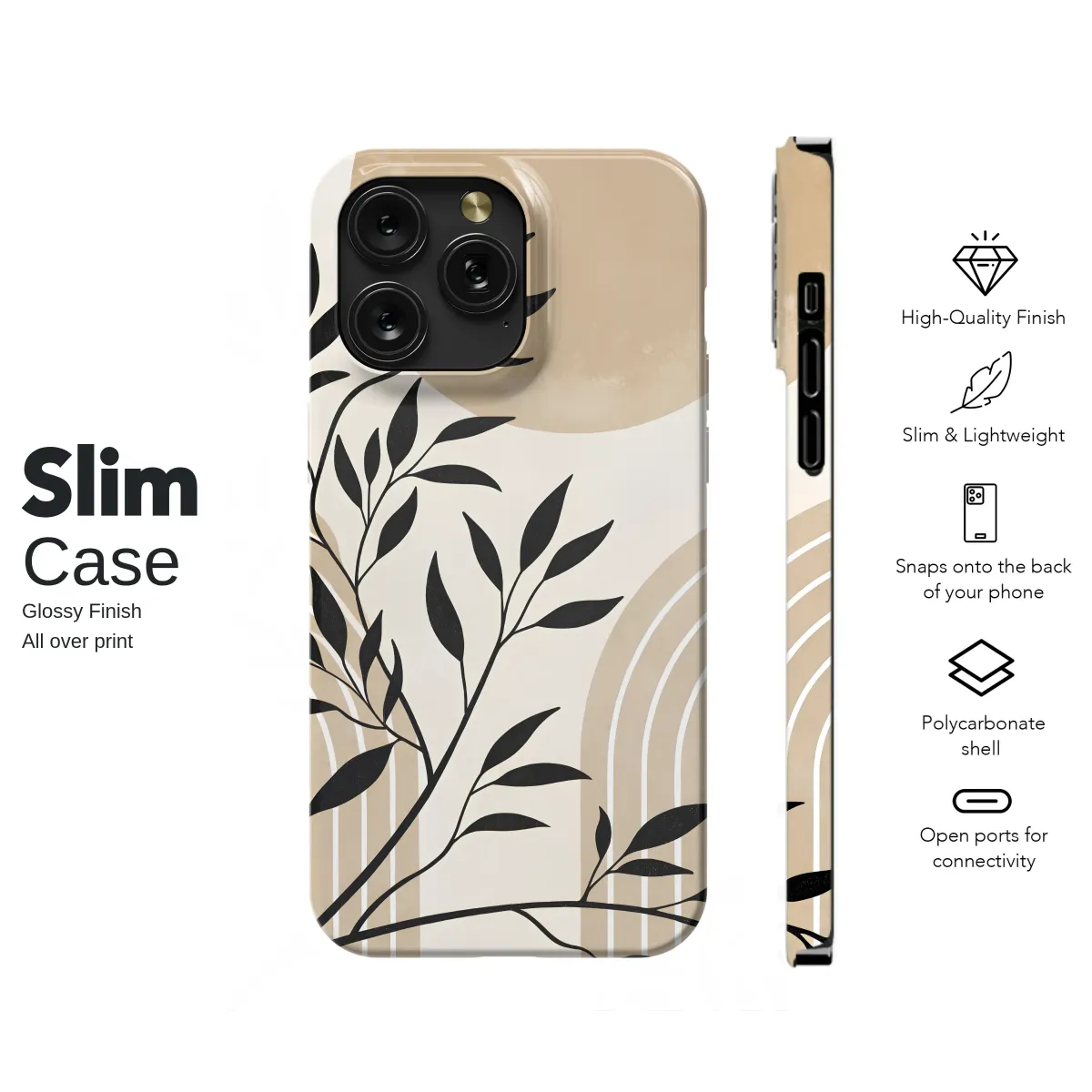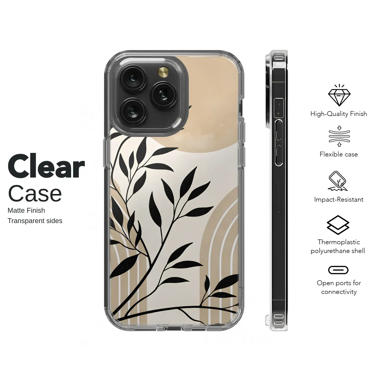 Embrace a moment of serene tranquility every time you reach for your most essential device with this stunning abstract botanical design. A delicate plant silhouette, rendered in bold, inky black, gracefully dances across a modern landscape of warm, earthy tones. A large, textured sun or moon hangs in a soft cream sky, casting a gentle, peaceful glow over minimalist rainbow arches that rise from below, grounding the design with clean, geometric harmony. This isn't just an accessory; it's a small, portable piece of art designed to accompany you on your daily journey. Perfect for the bohemian soul with a minimalist heart, this Japandi-inspired design transforms your tech into a statement of serene elegance and quiet confidence. The neutral color palette of sand, beige, and rich terracotta makes it a versatile and sophisticated gift for her, or for anyone who appreciates organic, nature-inspired aesthetics. Let this celestial botanical scene bring a touch of curated style to the palm of your hand, elevating your everyday with its uniquely calming and artistic beauty.