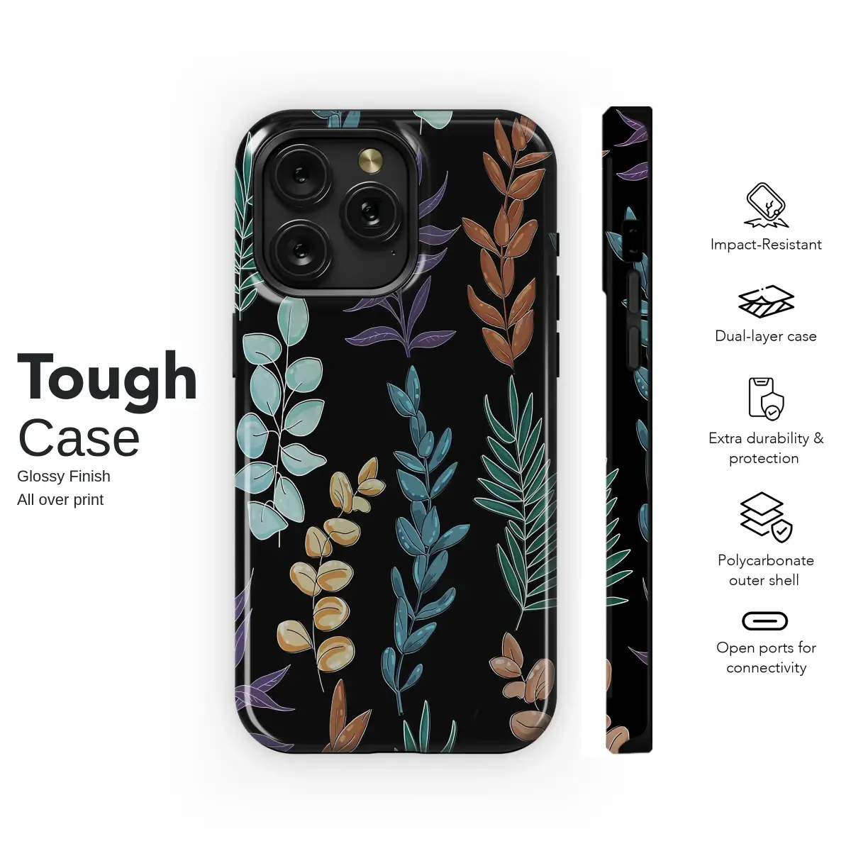 Step into an enchanted midnight garden, a secret world you can hold in the palm of your hand. This captivating botanical design is for the soul who finds beauty in twilight whispers and the quiet magic of the woods. Against a deep, velvety black canvas, a tapestry of hand-drawn foliage comes to life in a rich, moody palette. Imagine jewel-toned leaves of deep amethyst purple, silvery-blue eucalyptus, rustic copper, and serene teal green, all unfurling in an elegant dance. Each leaf and sprig is traced with a delicate, artistic outline, giving the pattern a stunning depth and making the colors pop like treasures found in a moonlit clearing. This stylish shield transforms your daily tech companion into a statement of your unique aesthetic, perfect for the modern witch, the cottagecore romantic, or the plant lover with an appreciation for dark floral beauty. It’s more than just a pretty design; it’s a piece of handheld art that speaks to a love for nature’s darker, more mysterious side. Let this goblincore-inspired pattern protect your most essential device, making it a perfect, thoughtful gift for her or a beautiful way to carry a piece of the enchanted forest with you wherever you wander.