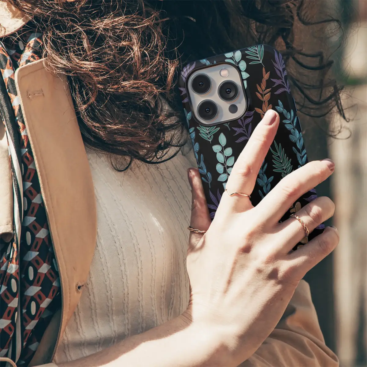 Step into an enchanted midnight garden, a secret world you can hold in the palm of your hand. This captivating botanical design is for the soul who finds beauty in twilight whispers and the quiet magic of the woods. Against a deep, velvety black canvas, a tapestry of hand-drawn foliage comes to life in a rich, moody palette. Imagine jewel-toned leaves of deep amethyst purple, silvery-blue eucalyptus, rustic copper, and serene teal green, all unfurling in an elegant dance. Each leaf and sprig is traced with a delicate, artistic outline, giving the pattern a stunning depth and making the colors pop like treasures found in a moonlit clearing. This stylish shield transforms your daily tech companion into a statement of your unique aesthetic, perfect for the modern witch, the cottagecore romantic, or the plant lover with an appreciation for dark floral beauty. It’s more than just a pretty design; it’s a piece of handheld art that speaks to a love for nature’s darker, more mysterious side. Let this goblincore-inspired pattern protect your most essential device, making it a perfect, thoughtful gift for her or a beautiful way to carry a piece of the enchanted forest with you wherever you wander.