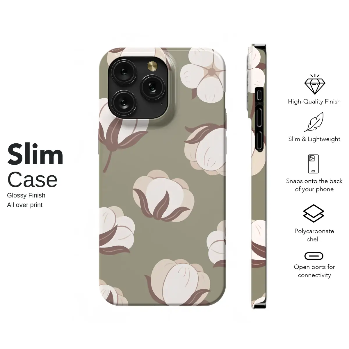 Immerse your world in the gentle, comforting embrace of a blooming cotton field with this exquisite artist-made design. Wrap your favorite accessory in a pattern that speaks of warmth, nature, and simple elegance. Soft, billowy cotton bolls and delicate blossoms drift across a tranquil sage green background, creating a visual tapestry of rustic charm. The earthy color palette, featuring hues of creamy off-white, warm beige, and a deep, grounding brown, invokes the peaceful feeling of a countryside morning. This botanical illustration is a perfect fit for a modern farmhouse aesthetic, a cottagecore dream, or anyone who appreciates a touch of nature-inspired art in their daily life. More than just a pretty pattern, it's a statement of quiet style and an ode to the simple beauty found in the natural world. It makes a wonderfully unique gift for a plant lover, a friend with a green thumb, or for yourself as a daily reminder of nature's soft and serene artistry. Let this elegant floral design bring a sense of organic calm and down-to-earth sophistication to your most essential item, turning it into a piece of wearable art.