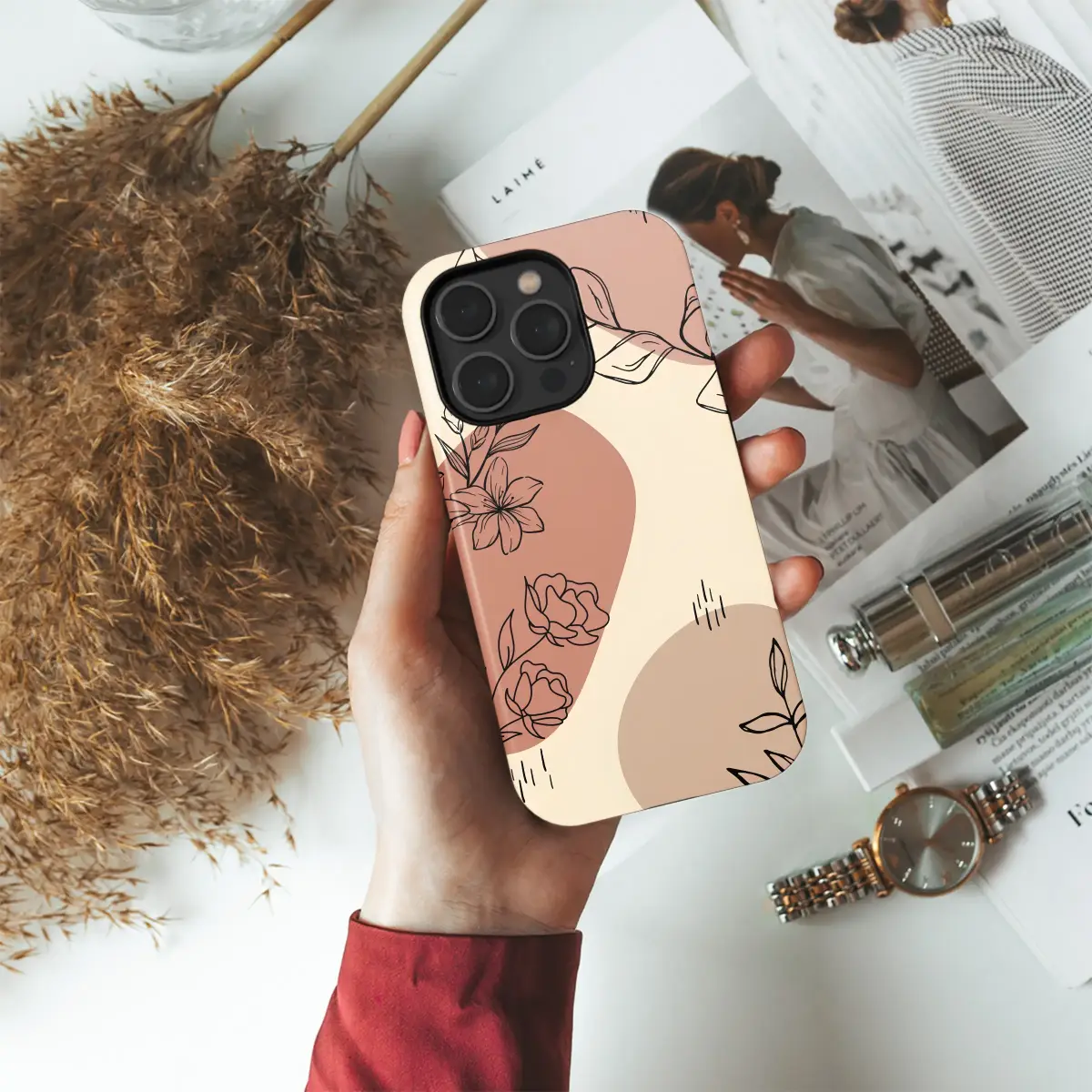Adorn your daily companion in the quiet elegance of a contemporary secret garden, a piece of art designed to bring a touch of nature's calm to your every moment. This beautiful boho design captures a minimalist dream, where delicate black line art blooms into life. You can almost feel the soft petals of the hand-drawn lilies and wild roses as they gracefully float over abstract shapes of warm, sun-drenched terracotta and gentle, sandy beige. The contrast against the creamy ivory backdrop is simply stunning, creating a sophisticated and earthy aesthetic that’s both modern and timeless. Little bursts of hand-drawn lines add a playful, artistic texture, making the design feel truly unique and personal. It’s the perfect protective accessory for the modern romantic, the plant lover, or anyone with a cottagecore heart who wants to carry a piece of art in their pocket. Far more than just a shield for your tech, it's a personal style statement and a daily reminder to find beauty in simplicity. This nature-inspired botanical illustration makes a thoughtful and trendy gift for her, a unique present for a best friend, or a special treat to elevate your own everyday essentials. Let this floral masterpiece be your personal armor, blending protection with pure artistic expression.