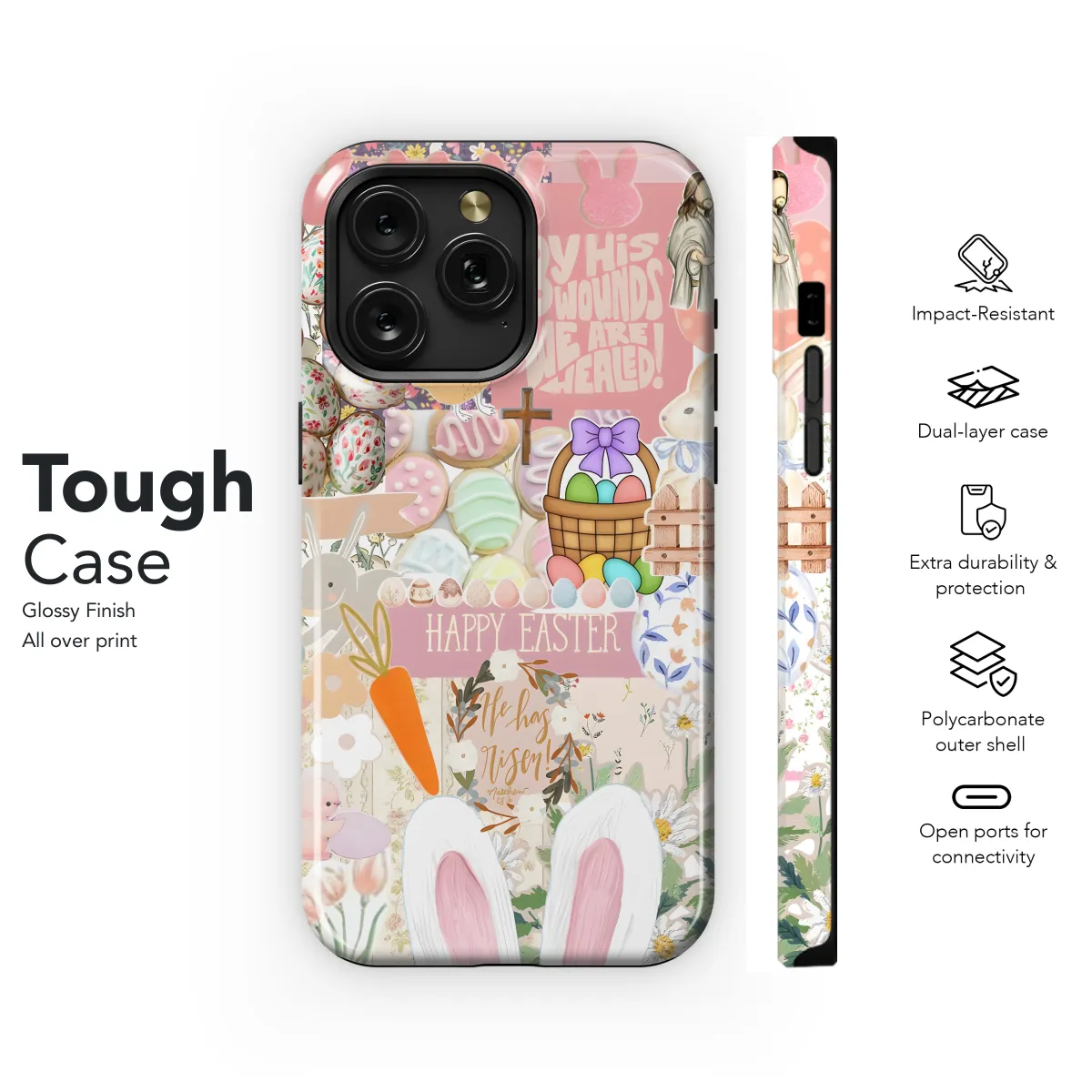 Celebrate the joy of Easter with our charming "Easter Bunny Blessings" phone case. Adorned with a whimsical design featuring adorable bunnies and cheerful Easter motifs, this case will bring a touch of springtime magic to your mobile device. Protect your phone while embracing the spirit of the holiday with this festive and protective accessory.