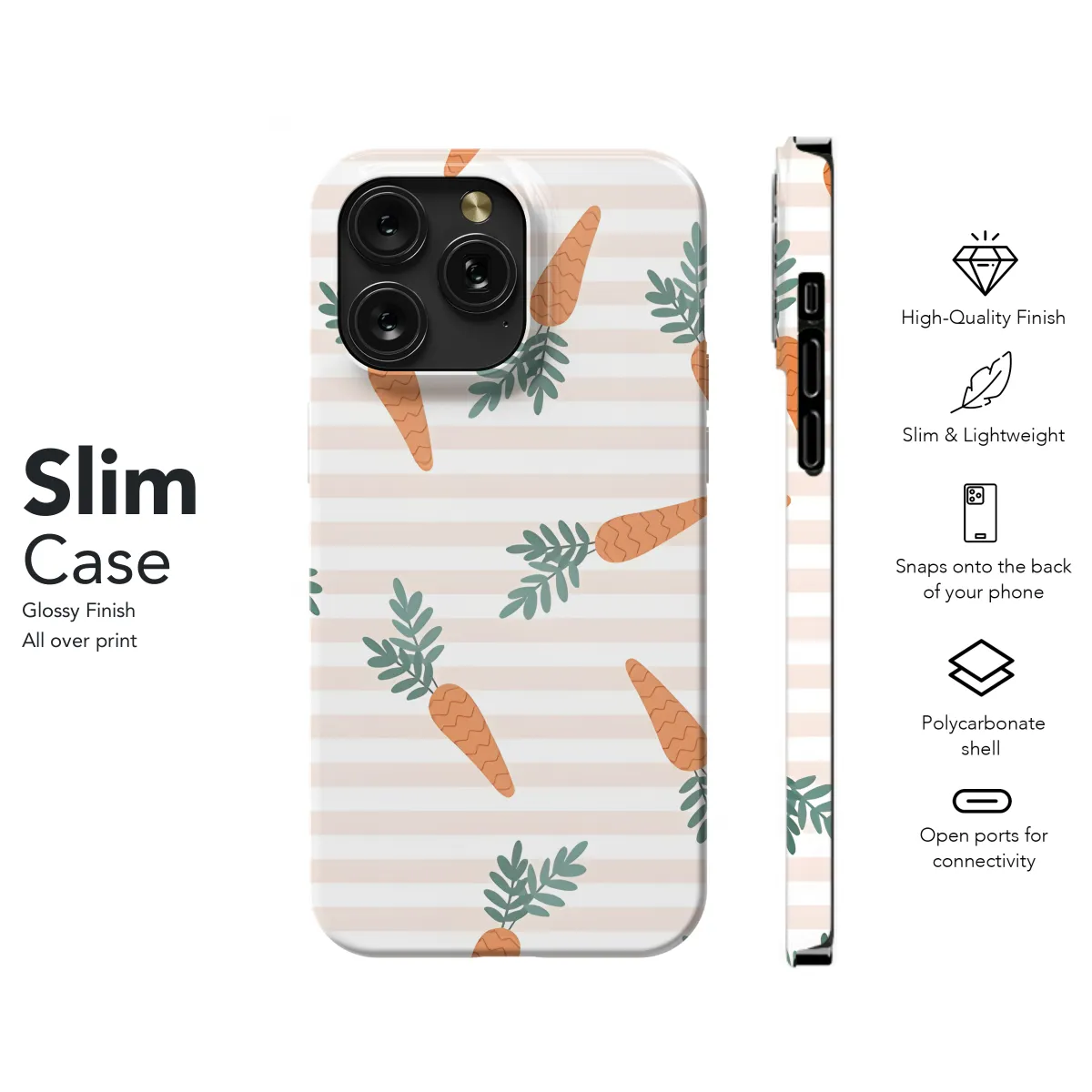 Hop on down the bunny trail with our charming Easter Bunny Carrot Stripe Phone Case! Adorned with adorable bunnies amidst a vibrant carrot patch, this case brings a touch of springtime whimsy to your device. Its durable design safeguards your phone from bumps and scratches while adding a dash of holiday cheer. Whether you're rocking an iPhone, Samsung, or Pixel, this case is the perfect accessory to brighten up your Easter celebration. Happy egg-hunting!