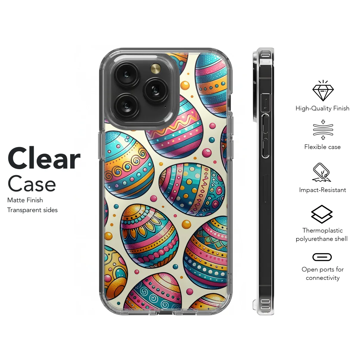 Celebrate the joy of Easter with our vibrant Easter Egg Mosaic Phone Case. This beautiful case is adorned with a colorful mosaic pattern inspired by traditional Easter eggs, adding a touch of springtime cheer to your device. Crafted from durable materials, this case provides superior protection against scratches, drops, and daily wear and tear. Its slim profile ensures a snug fit, while the precise cutouts allow easy access to all your phone's features. Compatible with iPhone, Samsung, and Pixel devices, this case is the perfect accessory to bring the spirit of Easter into your everyday life. Its vibrant colors and intricate design make it a statement piece that will turn heads wherever you go.