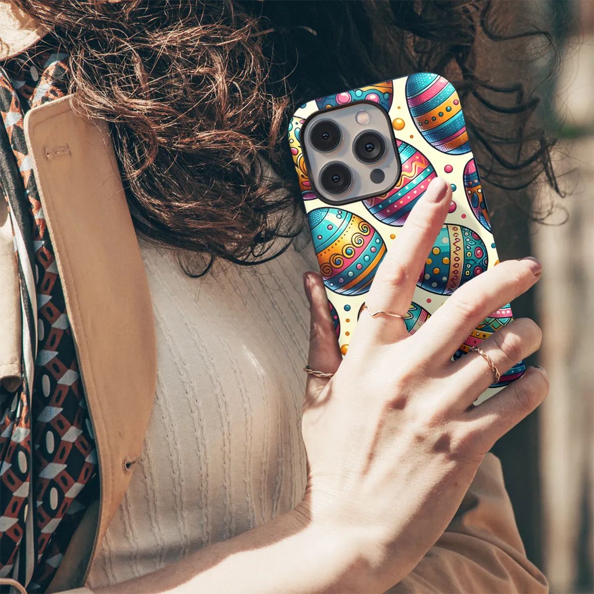 Celebrate the joy of Easter with our vibrant Easter Egg Mosaic Phone Case. This beautiful case is adorned with a colorful mosaic pattern inspired by traditional Easter eggs, adding a touch of springtime cheer to your device. Crafted from durable materials, this case provides superior protection against scratches, drops, and daily wear and tear. Its slim profile ensures a snug fit, while the precise cutouts allow easy access to all your phone's features. Compatible with iPhone, Samsung, and Pixel devices, this case is the perfect accessory to bring the spirit of Easter into your everyday life. Its vibrant colors and intricate design make it a statement piece that will turn heads wherever you go.