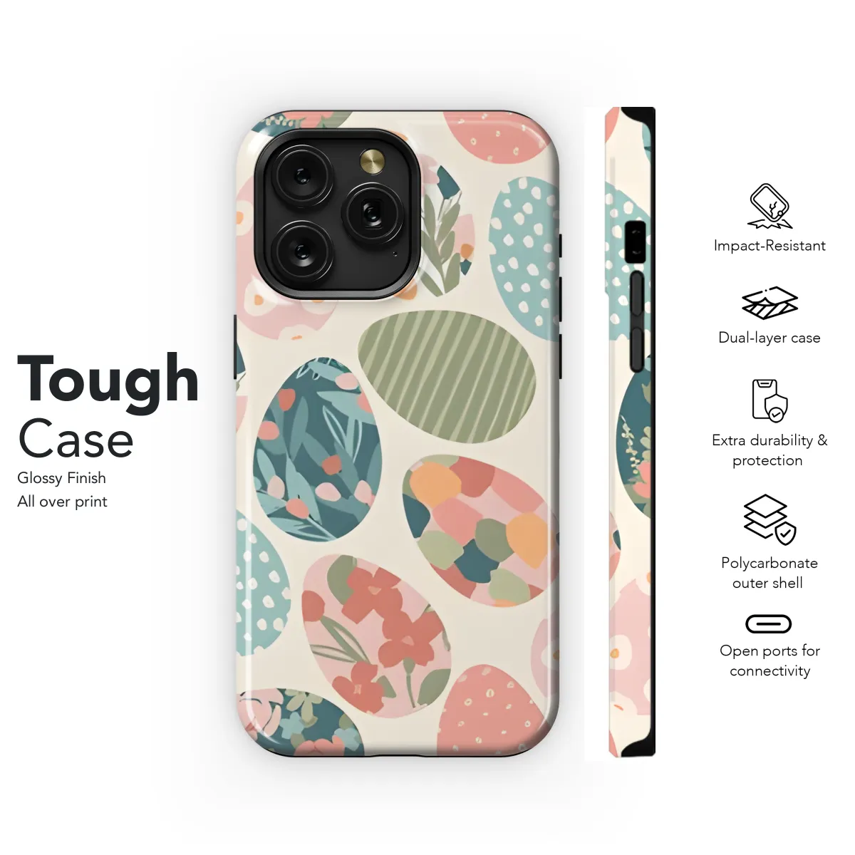 Adorn your phone with this captivating Easter Eggs Abstract Flower Phone Case. Its vibrant design features a kaleidoscope of colors and whimsical eggs, creating an eye-catching statement. The durable construction provides reliable protection, while the precise cutouts ensure seamless access to your device's functions. This phone case is a perfect blend of style and functionality, making it an essential accessory for any fashion-forward individual.