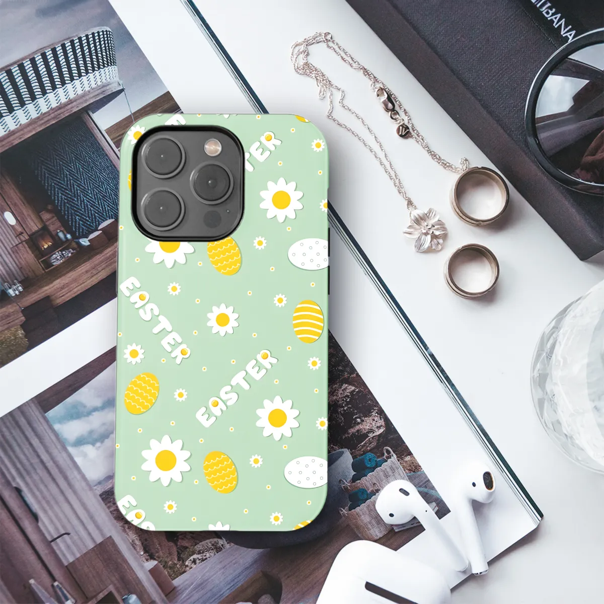 Celebrate the vibrant spirit of Easter with our charming Easter Eggs and Flowers Phone Case. Designed to adorn your iPhone, Samsung, or Pixel device, this case is a whimsical blend of springtime hues and playful motifs. The intricate floral patterns and vibrant Easter eggs dance across the surface, adding a touch of cheer to your daily routine. Safeguard your phone while embracing the joy and warmth of the season with our Easter-inspired phone case.