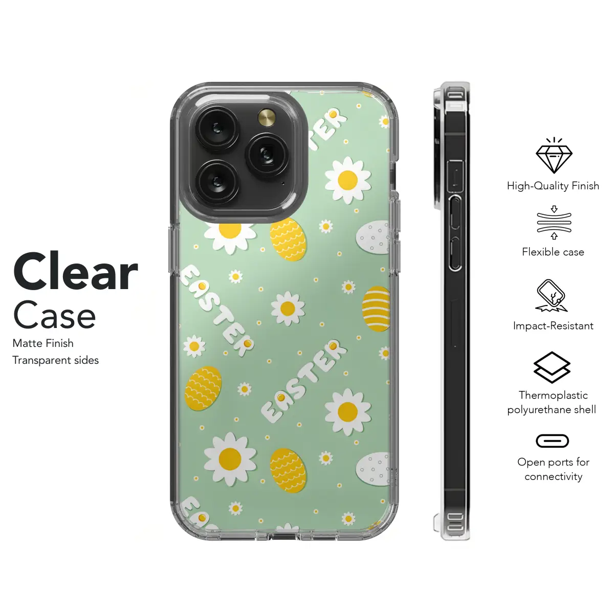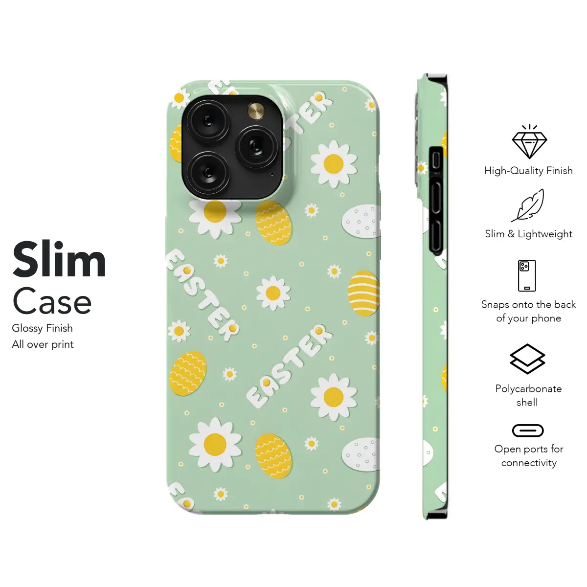 Celebrate the vibrant spirit of Easter with our charming Easter Eggs and Flowers Phone Case. Designed to adorn your iPhone, Samsung, or Pixel device, this case is a whimsical blend of springtime hues and playful motifs. The intricate floral patterns and vibrant Easter eggs dance across the surface, adding a touch of cheer to your daily routine. Safeguard your phone while embracing the joy and warmth of the season with our Easter-inspired phone case.