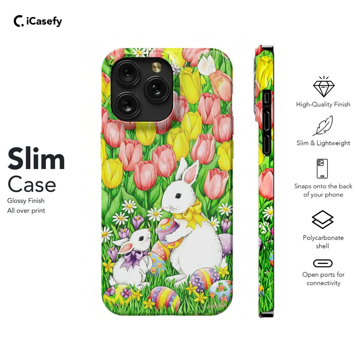 Celebrate the joy of Easter with our Rabbit Egg phone case. This whimsical design features a delightful Easter rabbit nestled beside a colorful Easter egg, radiating the charm of the holiday season. Crafted for both style and protection, it offers precise cutouts for easy access to ports and buttons. Let this accessory be a reminder of the festive spirit and renewal that Easter brings.