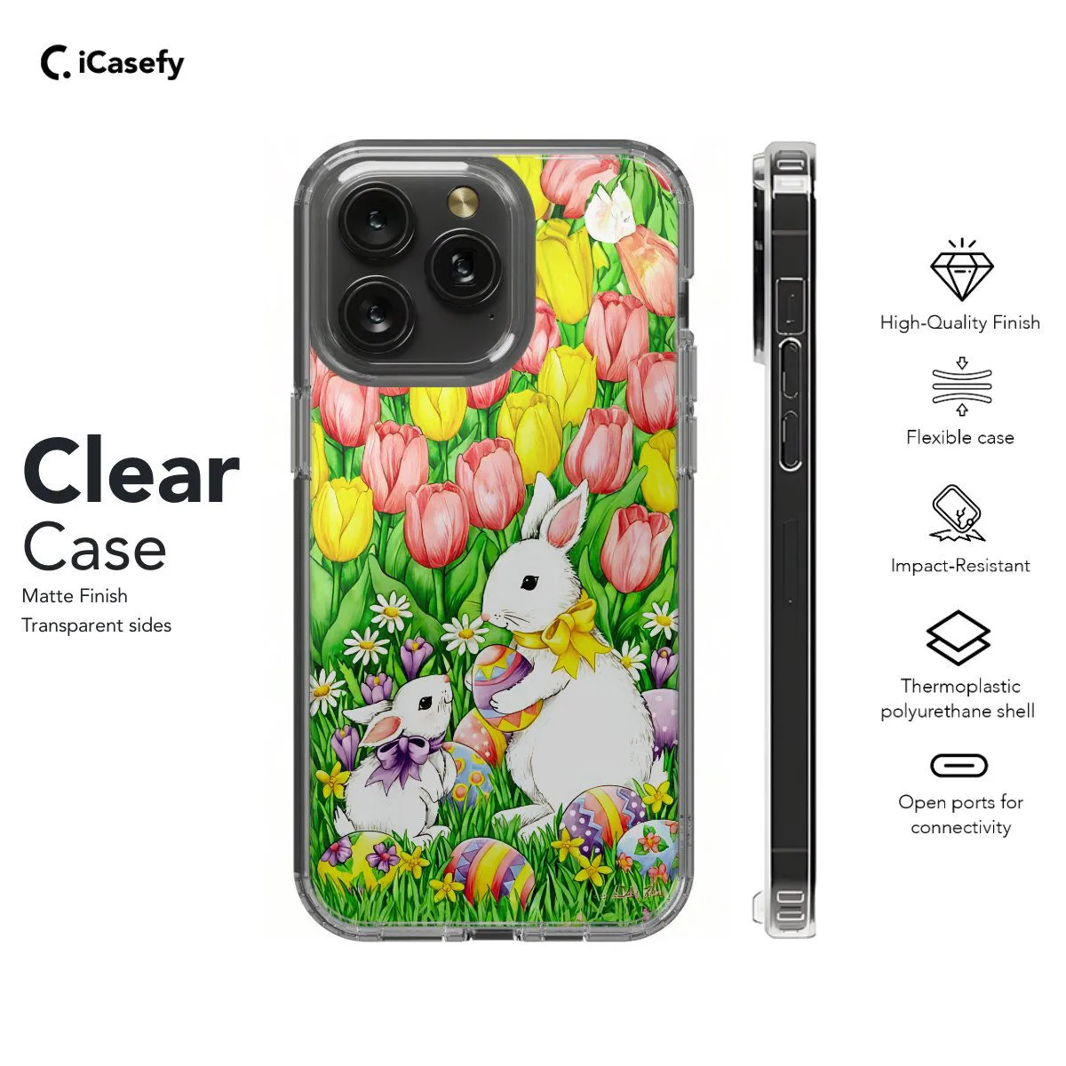 Celebrate the joy of Easter with our Rabbit Egg phone case. This whimsical design features a delightful Easter rabbit nestled beside a colorful Easter egg, radiating the charm of the holiday season. Crafted for both style and protection, it offers precise cutouts for easy access to ports and buttons. Let this accessory be a reminder of the festive spirit and renewal that Easter brings.