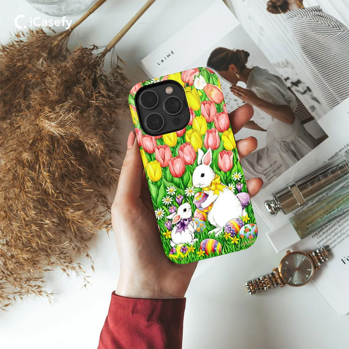 Celebrate the joy of Easter with our Rabbit Egg phone case. This whimsical design features a delightful Easter rabbit nestled beside a colorful Easter egg, radiating the charm of the holiday season. Crafted for both style and protection, it offers precise cutouts for easy access to ports and buttons. Let this accessory be a reminder of the festive spirit and renewal that Easter brings.
