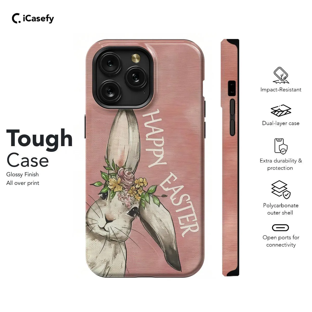 Celebrate the joy of Easter with our Rabbit Egg phone case. This whimsical design features a delightful Easter rabbit nestled beside a colorful Easter egg, radiating the charm of the holiday season. Crafted for both style and protection, it offers precise cutouts for easy access to ports and buttons. Let this accessory be a reminder of the festive spirit and renewal that Easter brings.