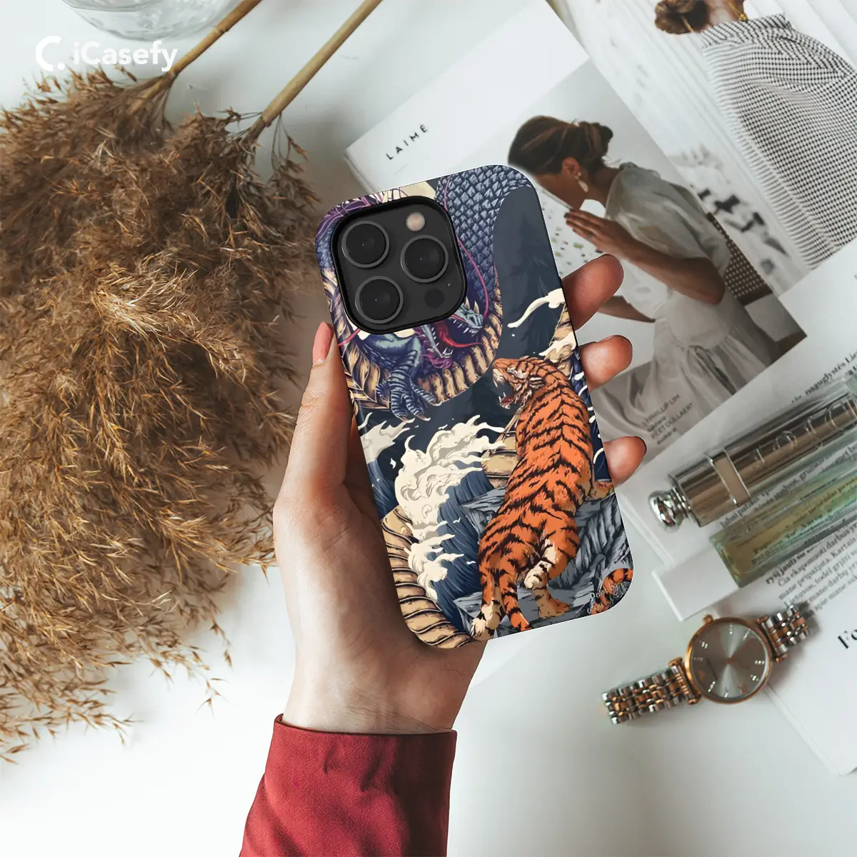 Protect your phone with our exclusive Eastern Chinese Tiger Dragon phone case. This stunning design features a fierce tiger and a majestic dragon, inspired by ancient Chinese mythology. Crafted with durable materials, our case safeguards your device from scratches, drops, and everyday wear and tear. Available for a range of iPhone, Samsung, and Pixel models, this case is the perfect blend of style and protection.