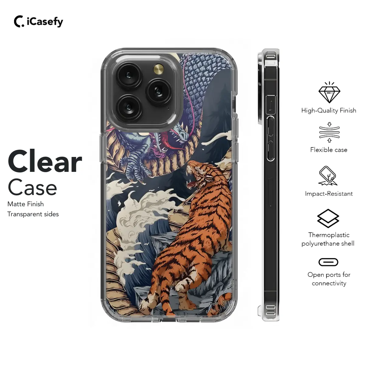 Protect your phone with our exclusive Eastern Chinese Tiger Dragon phone case. This stunning design features a fierce tiger and a majestic dragon, inspired by ancient Chinese mythology. Crafted with durable materials, our case safeguards your device from scratches, drops, and everyday wear and tear. Available for a range of iPhone, Samsung, and Pixel models, this case is the perfect blend of style and protection.