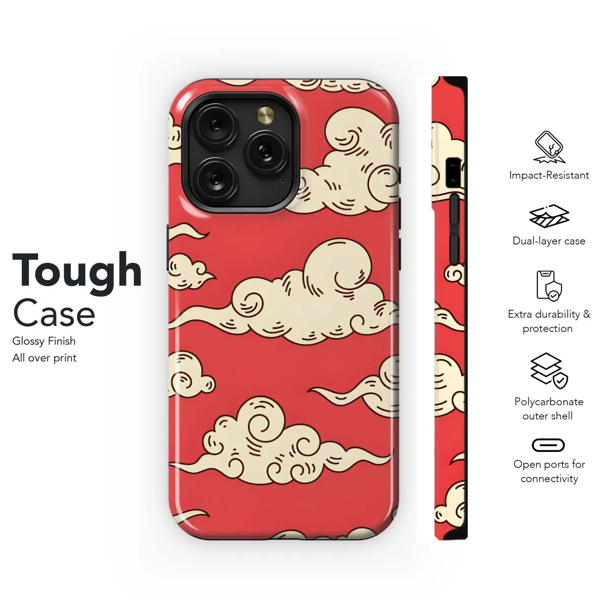 Adorn your essential digital companion with a captivating design inspired by ancient Asian artistry. This exquisite pattern features beautifully rendered traditional clouds in a soft cream tone, set against a rich, vibrant red background. Each cloud swirls and curls in the classic style seen in historical Chinese and Japanese art, symbolizing good fortune, spiritual ascension, and the journey of the soul. The intricate linework within each cloud adds a touch of elegant detail, creating a visually striking and deeply meaningful motif. Perfect for those who appreciate unique cultural aesthetics and seek to express their personal style through their everyday items, this graphic application brings a piece of timeless oriental elegance to your grasp. The seamless nature of the pattern ensures a continuous, flowing visual that wraps your handheld tech in sophisticated charm. Elevate your device's look with this auspicious cloud design, transforming it into a vibrant piece of art and a conversation starter. It makes a thoughtful and stylish gift for anyone who loves traditional Asian culture, mythical imagery, or simply stands out with unique accessories. Experience the blend of protection and profound beauty with this stunning red and cream cloud pattern, a true testament to enduring artistic traditions. This distinctive art piece provides not just visual appeal but also a sense of connection to ancient symbolism and cultural heritage. It's a vibrant statement accessory reflecting a passion for unique and meaningful designs, ready to personalize your digital life.