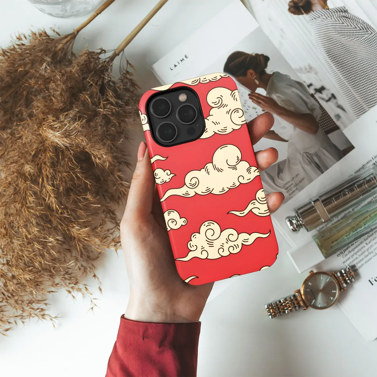 Adorn your essential digital companion with a captivating design inspired by ancient Asian artistry. This exquisite pattern features beautifully rendered traditional clouds in a soft cream tone, set against a rich, vibrant red background. Each cloud swirls and curls in the classic style seen in historical Chinese and Japanese art, symbolizing good fortune, spiritual ascension, and the journey of the soul. The intricate linework within each cloud adds a touch of elegant detail, creating a visually striking and deeply meaningful motif. Perfect for those who appreciate unique cultural aesthetics and seek to express their personal style through their everyday items, this graphic application brings a piece of timeless oriental elegance to your grasp. The seamless nature of the pattern ensures a continuous, flowing visual that wraps your handheld tech in sophisticated charm. Elevate your device's look with this auspicious cloud design, transforming it into a vibrant piece of art and a conversation starter. It makes a thoughtful and stylish gift for anyone who loves traditional Asian culture, mythical imagery, or simply stands out with unique accessories. Experience the blend of protection and profound beauty with this stunning red and cream cloud pattern, a true testament to enduring artistic traditions. This distinctive art piece provides not just visual appeal but also a sense of connection to ancient symbolism and cultural heritage. It's a vibrant statement accessory reflecting a passion for unique and meaningful designs, ready to personalize your digital life.